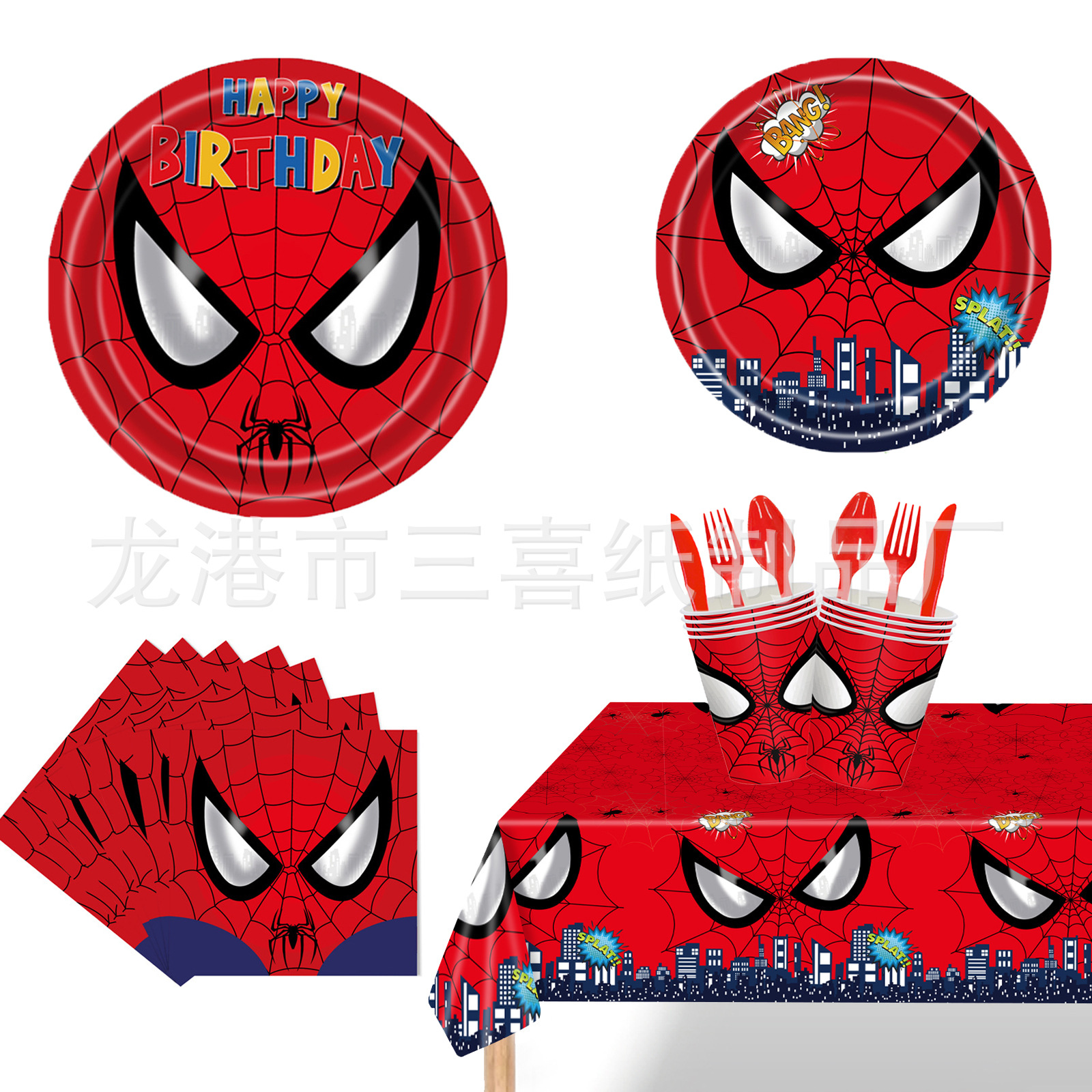 スパイダーマンパーティー用品テーマパーティー装飾使い捨て紙皿紙コップティッシュテーブルクロスバナー雰囲気アレンジ