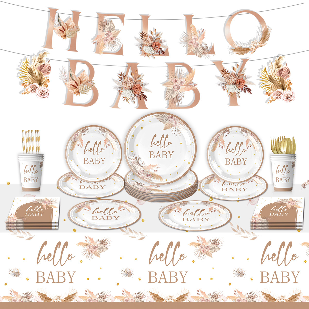 2025新しいボヘミアンのテーマのパーティー用品の花の使い捨ての食器のバナーのテーブルクロスのケーキの装飾