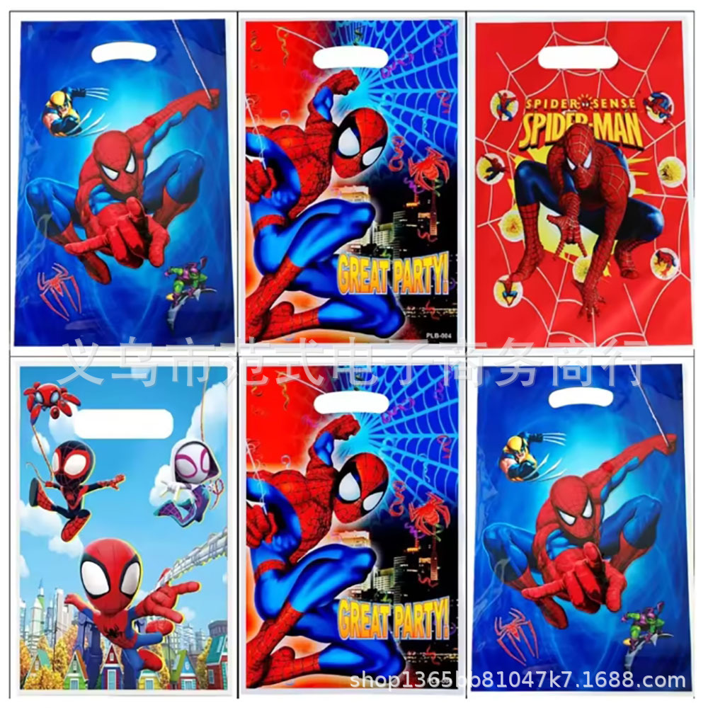 ホット販売マーベルスパイダーマンギフトバッグ PE ビニール袋キャンディーバッグパーティー装飾真珠光沢のあるフィルムキャンディーギフトバッグ
