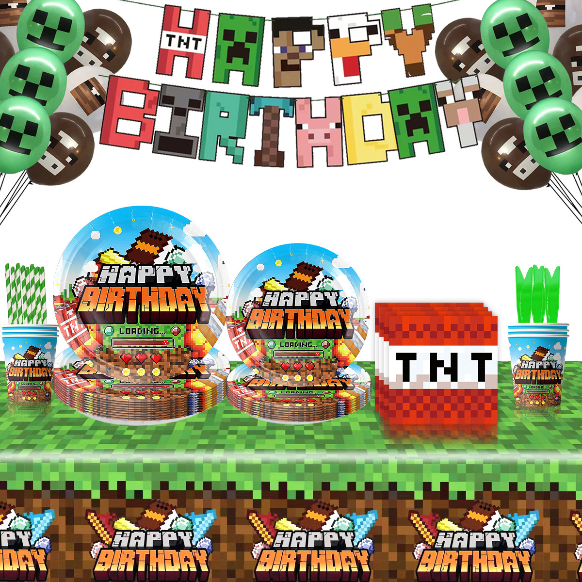 新しいデザインの私の世界のパーティーの装飾用品の誕生日ピクセルの紙の皿は旗のケーキを引っ張ります。