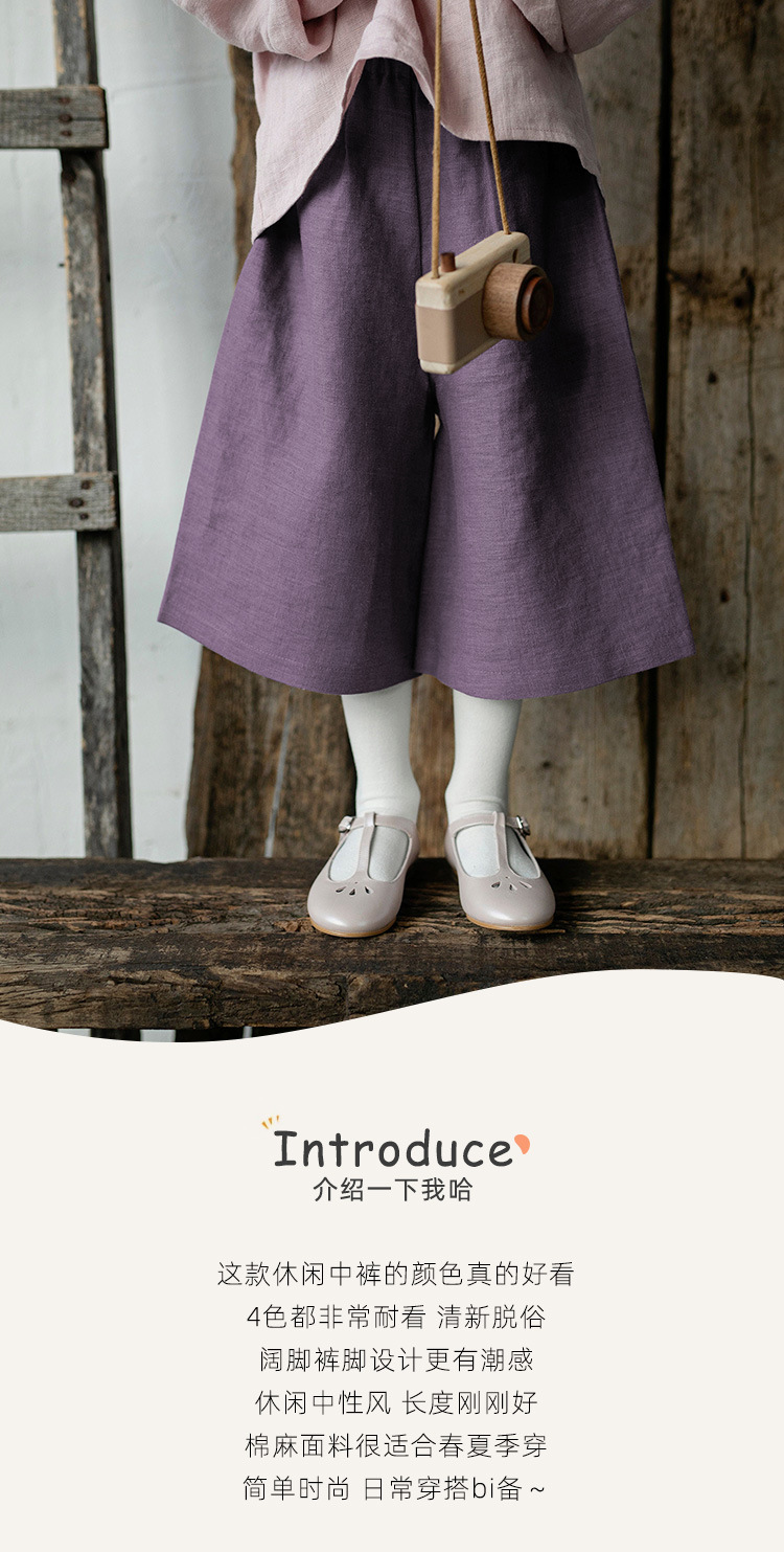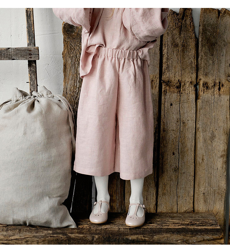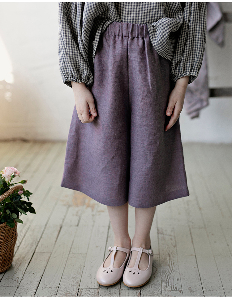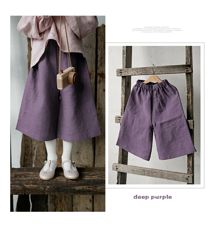 女の子服北欧スタイル綿とリネンワイドレッグパンツカジュアルクロップドパンツ女の子ベビーリネン無地ウエストゴムパンツ