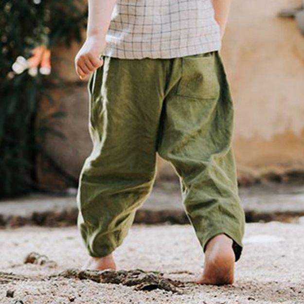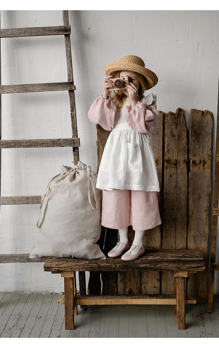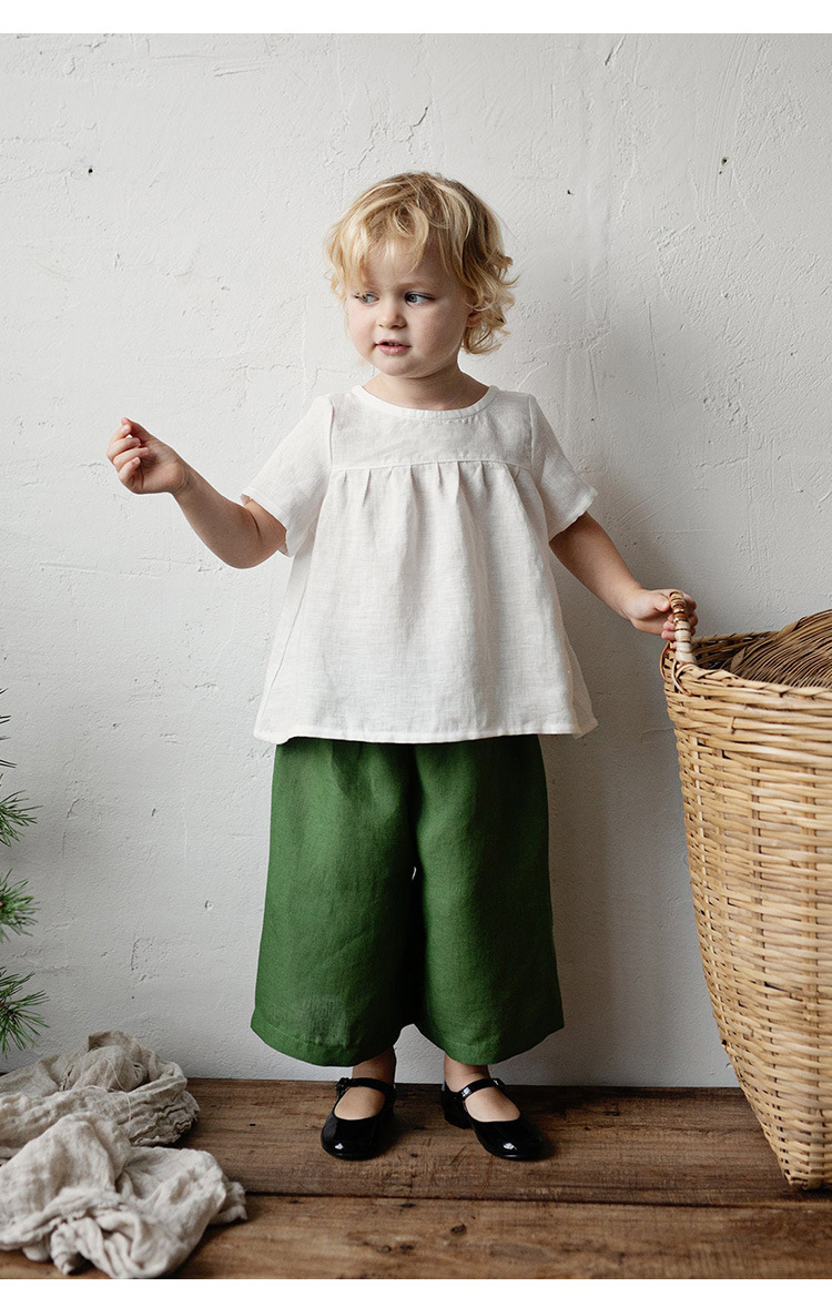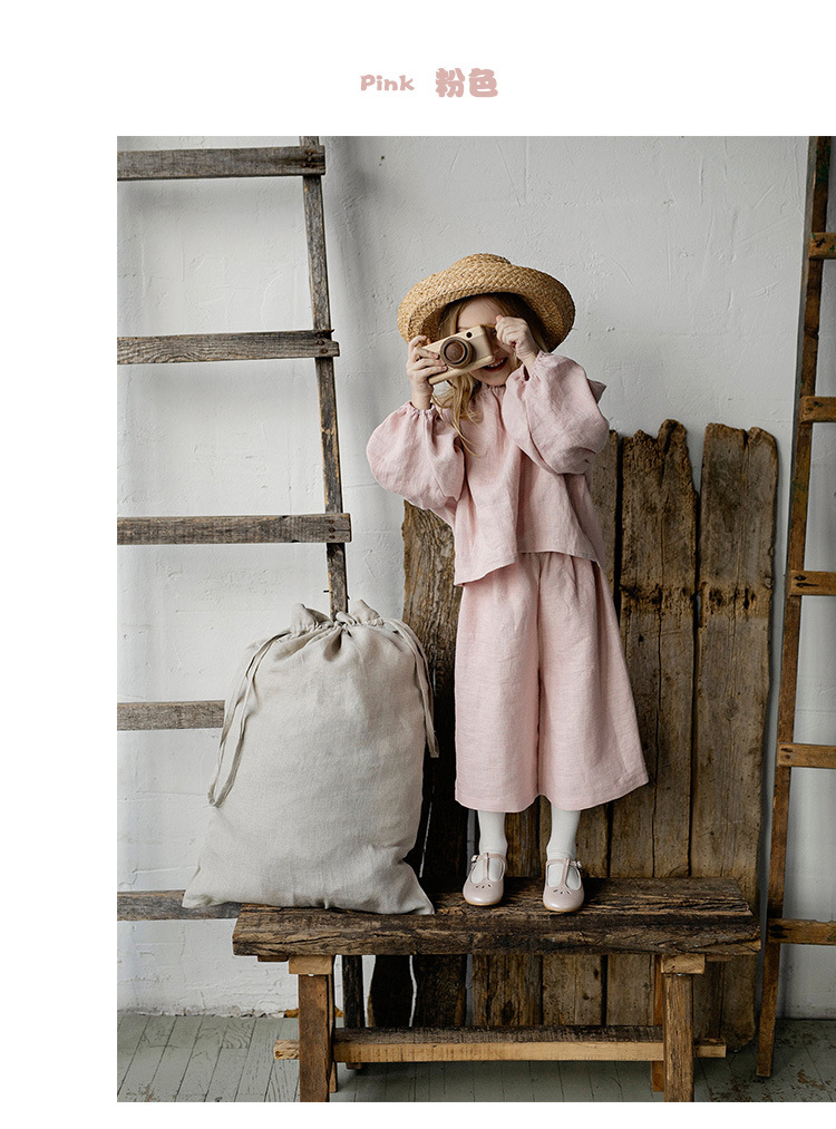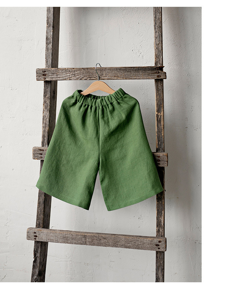 女の子服北欧スタイル綿とリネンワイドレッグパンツカジュアルクロップドパンツ女の子ベビーリネン無地ウエストゴムパンツ