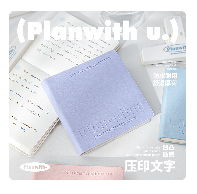 planwith ミニ A7 学生ポケットブック 80 枚の正方形の空白の手元帳高価値のシンプルなスタイルの革表紙の本