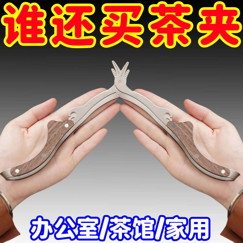 新款不锈钢茶道镊子实木茶具配件泡茶工具加厚洗杯夹子高档茶道