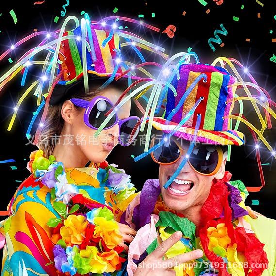 滑稽な道化師の虹の礼帽LEDカーニバルの狂気の趣味の道化師の狂気の帽子の発光の麺のランプの列