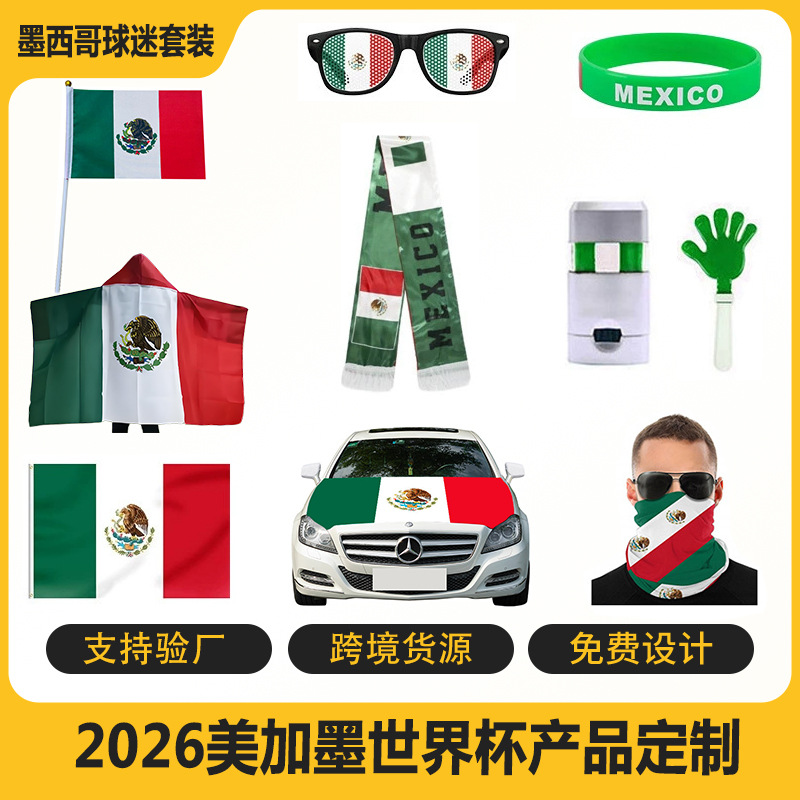 美加墨2026世界杯球迷围巾墨西哥旗帜球衣T恤帽子拍拍手脸彩定 制