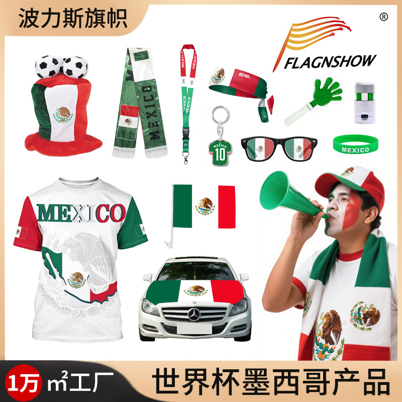2026世界杯球迷用品墨西哥围巾披肩旗手摇旗拍拍手脸彩头巾旗帜