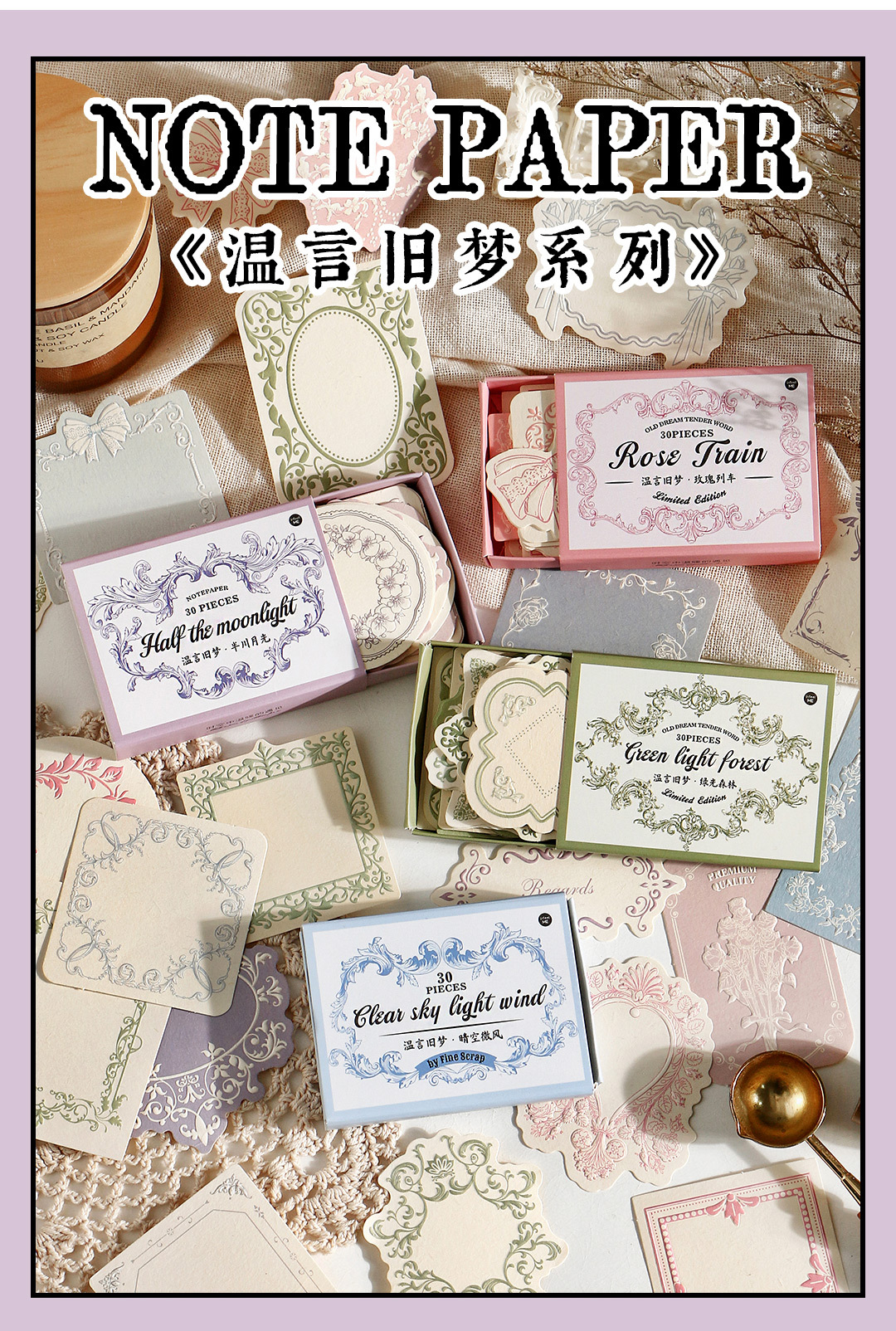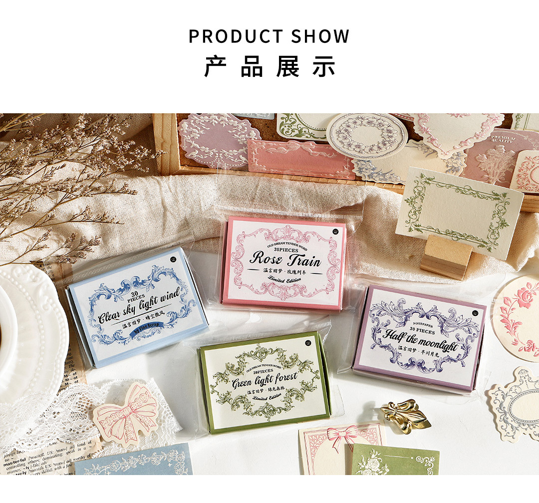 Infeel.Me温言旧夢シリーズ凸版付箋紙塩系レース枠手帳書き可能素材紙