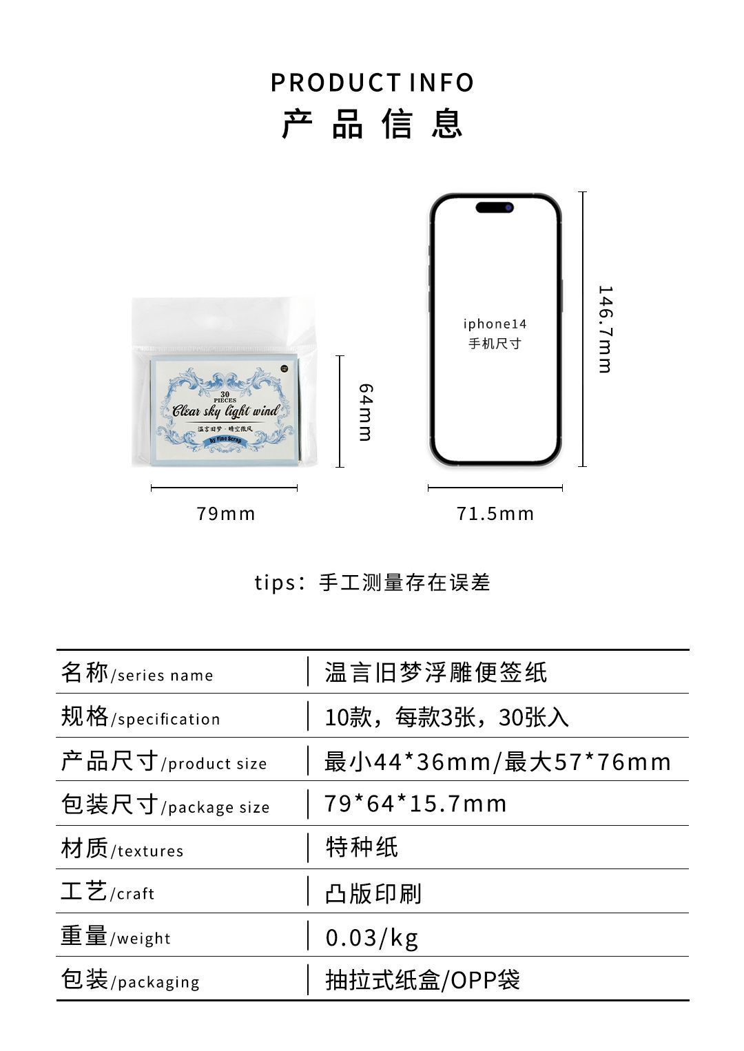 Infeel.Meレリーフ付箋紙温言旧夢シリーズ淡い色合い素材手帳diy装飾メモ紙