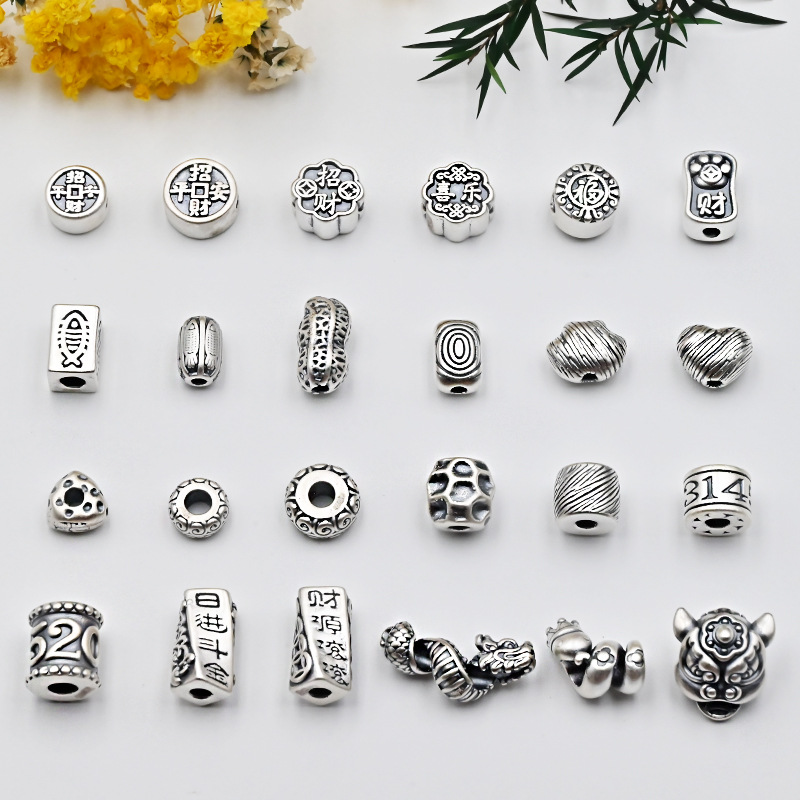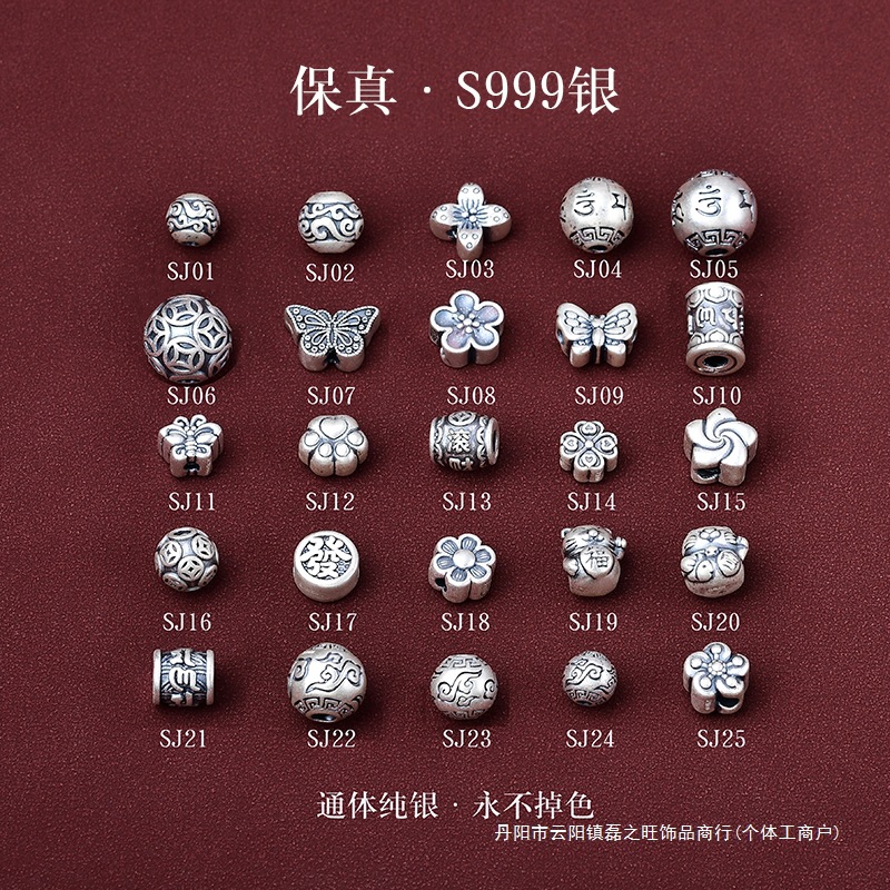 足銀999平安喜楽隔珠3d硬銀散珠部品DIY手作りビーズ編みブレスレットアクセサリー