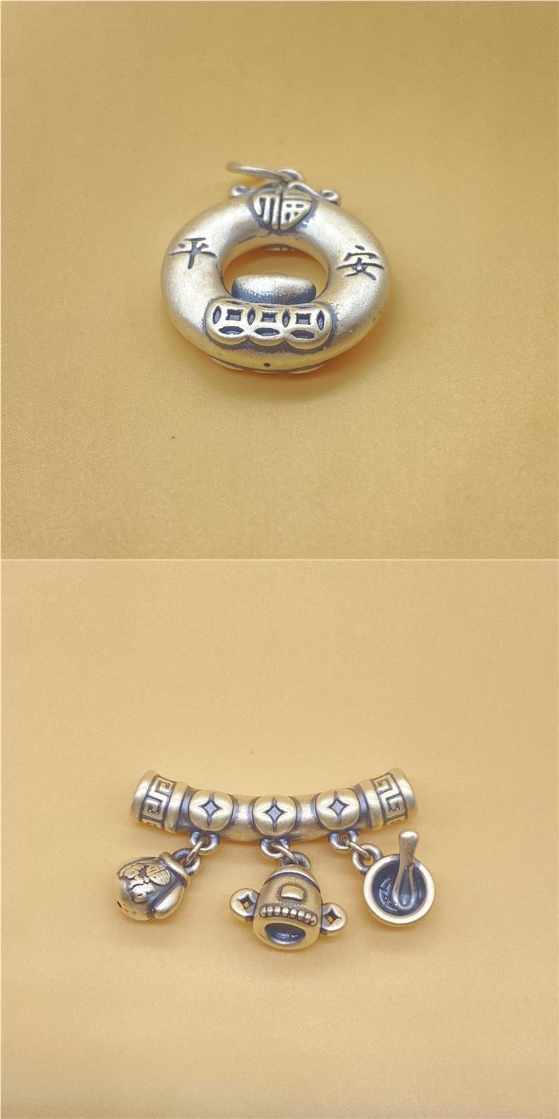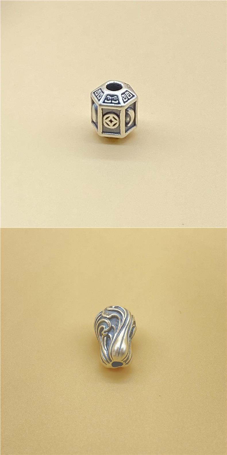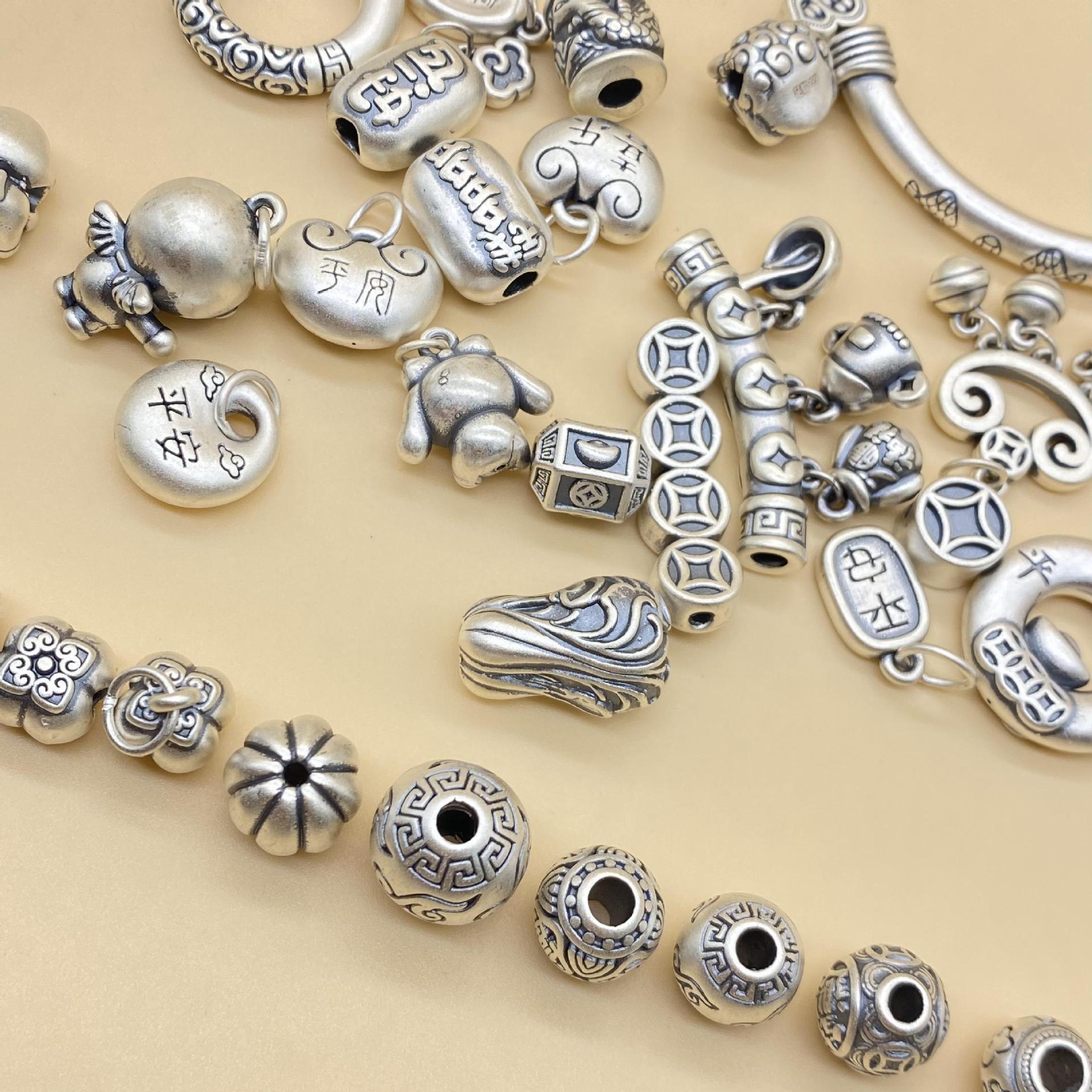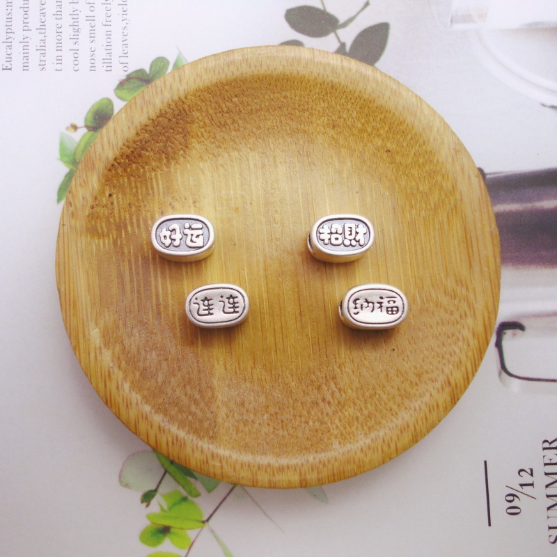 S999纯银足银银祥云回纹六字如意转运珠散珠DIY手链挂件配件隔珠