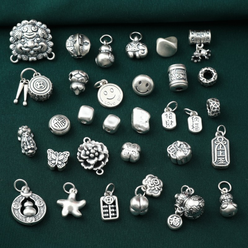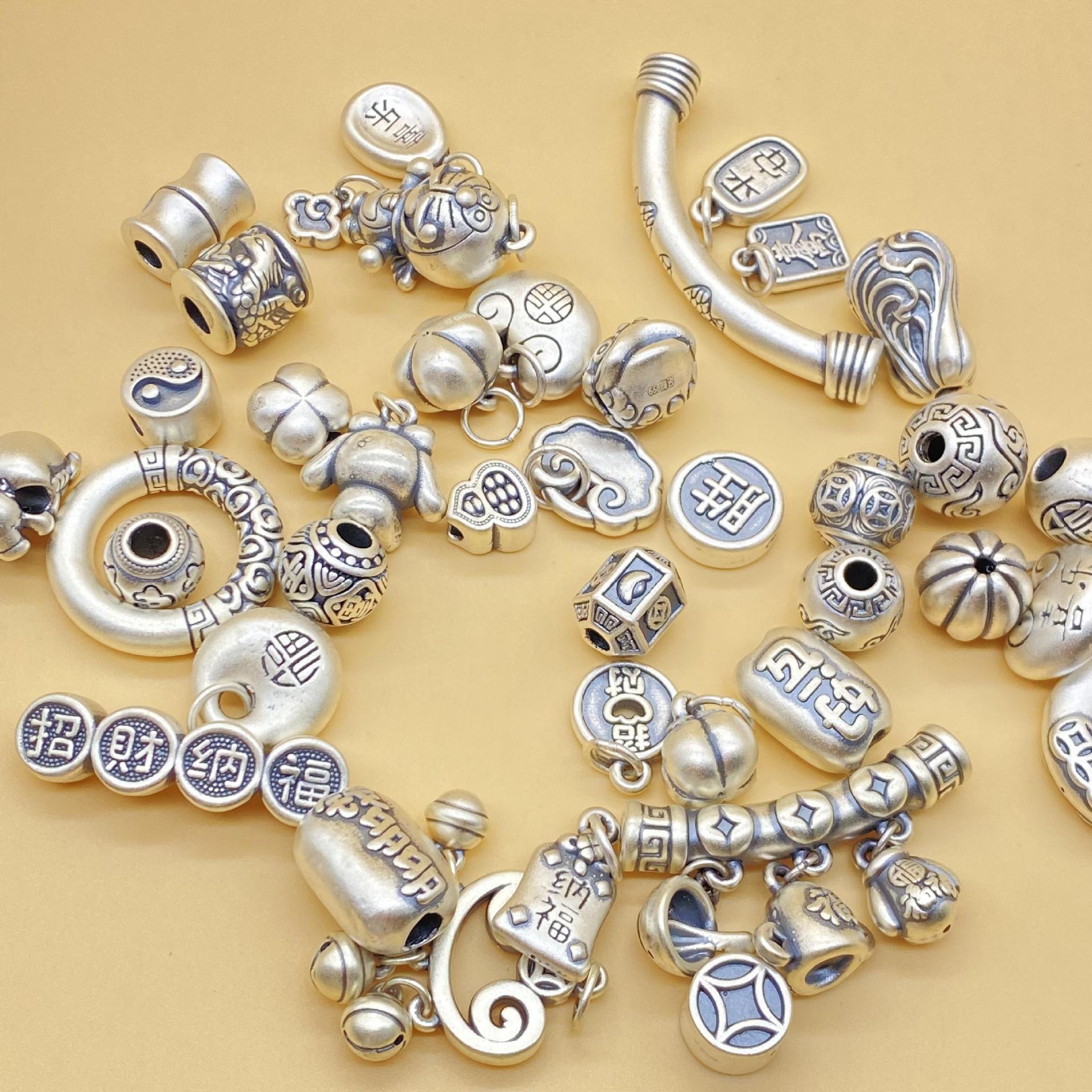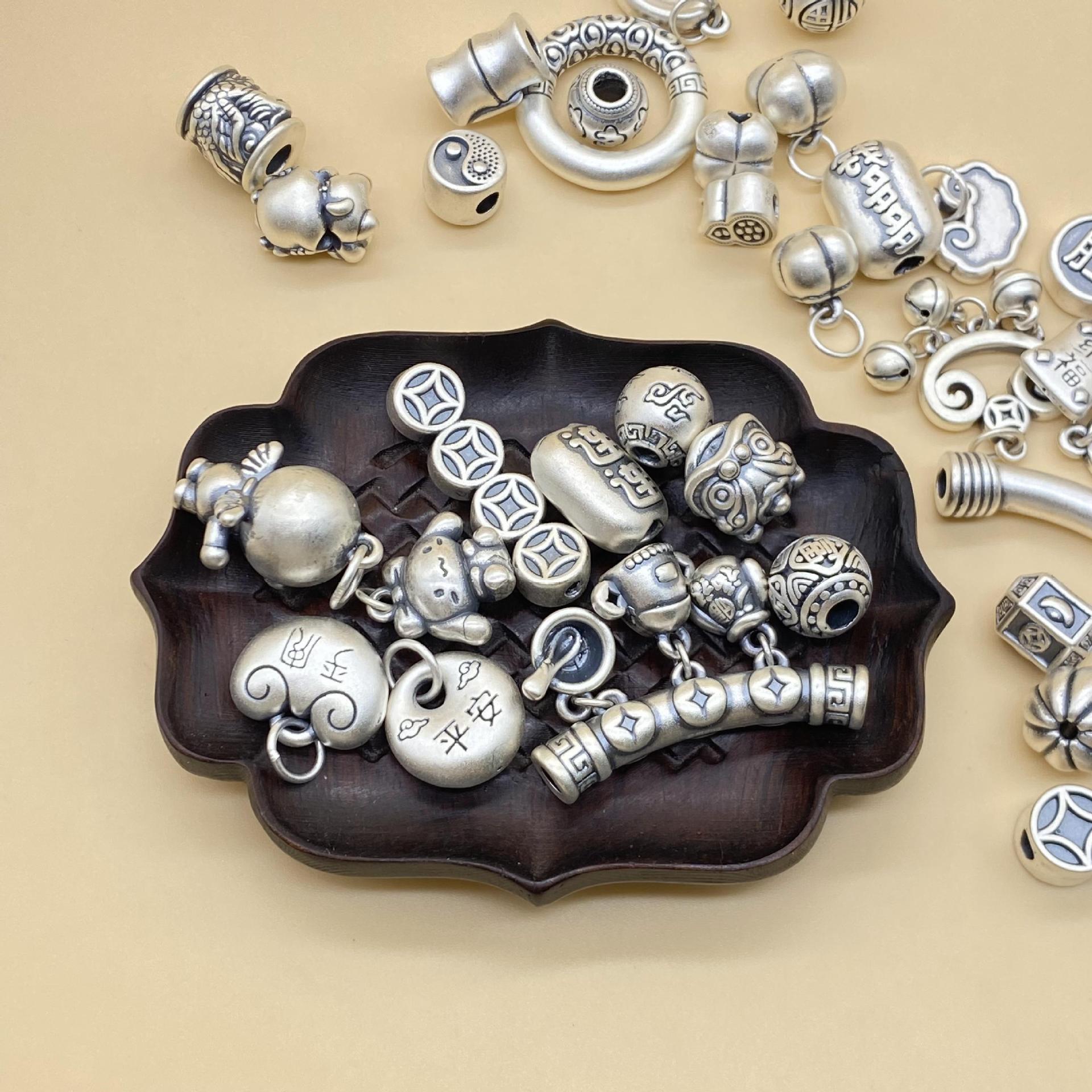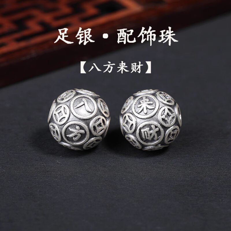 S999纯银真银足银八方来财散珠子diy男女手链手工编织挂件配件饰