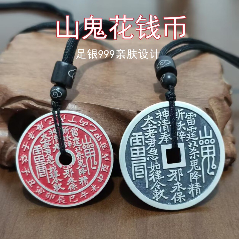 純銀999山鬼花钱銭幣ペンダント純銀八卦図平安飾りネックレスアクセサリー吉祥模様