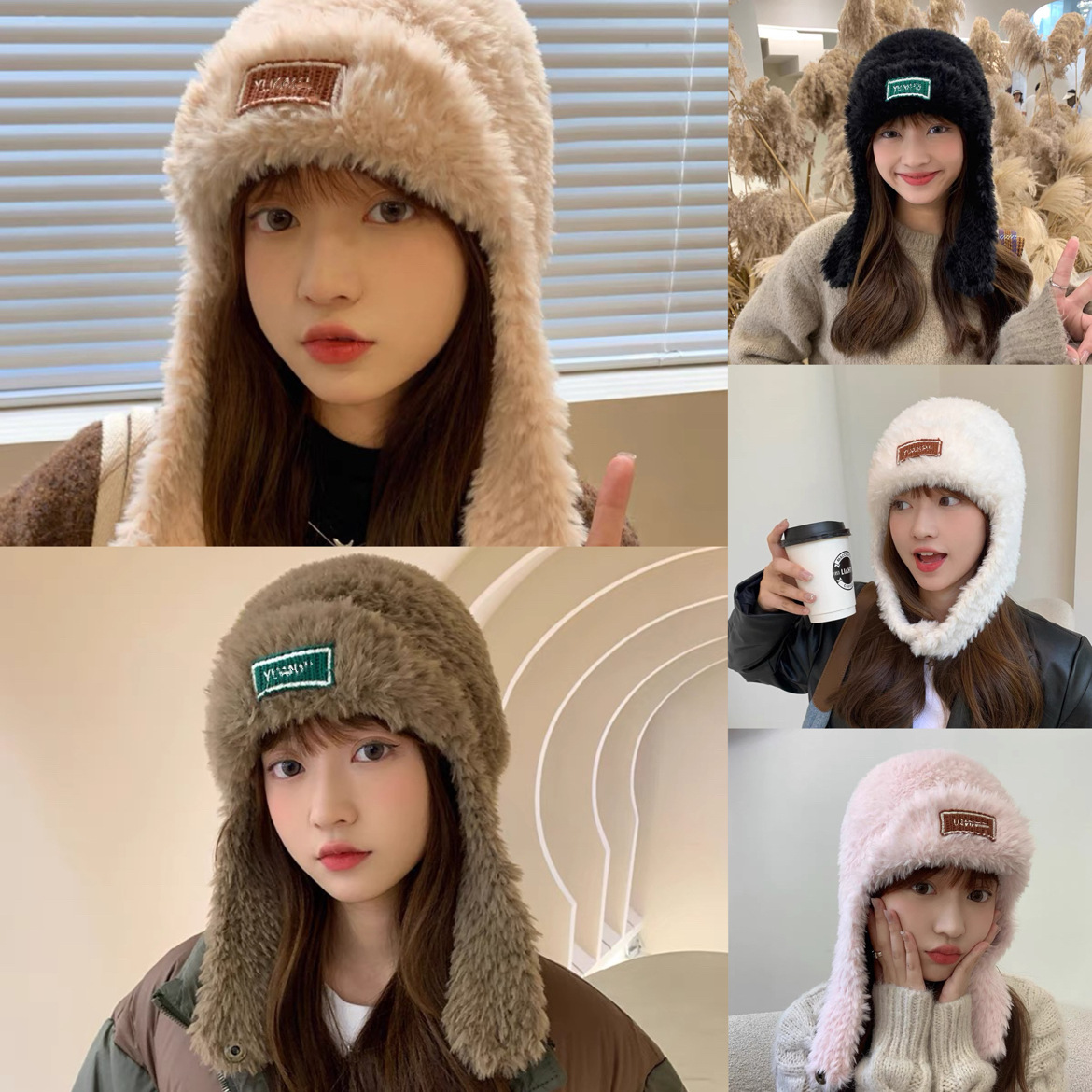 2025年新作ぬいぐるみ帽子 レディース 冬用 レイフェン帽 秋冬用 サイクリング用 防寒神器 耳当て付き毛糸帽子