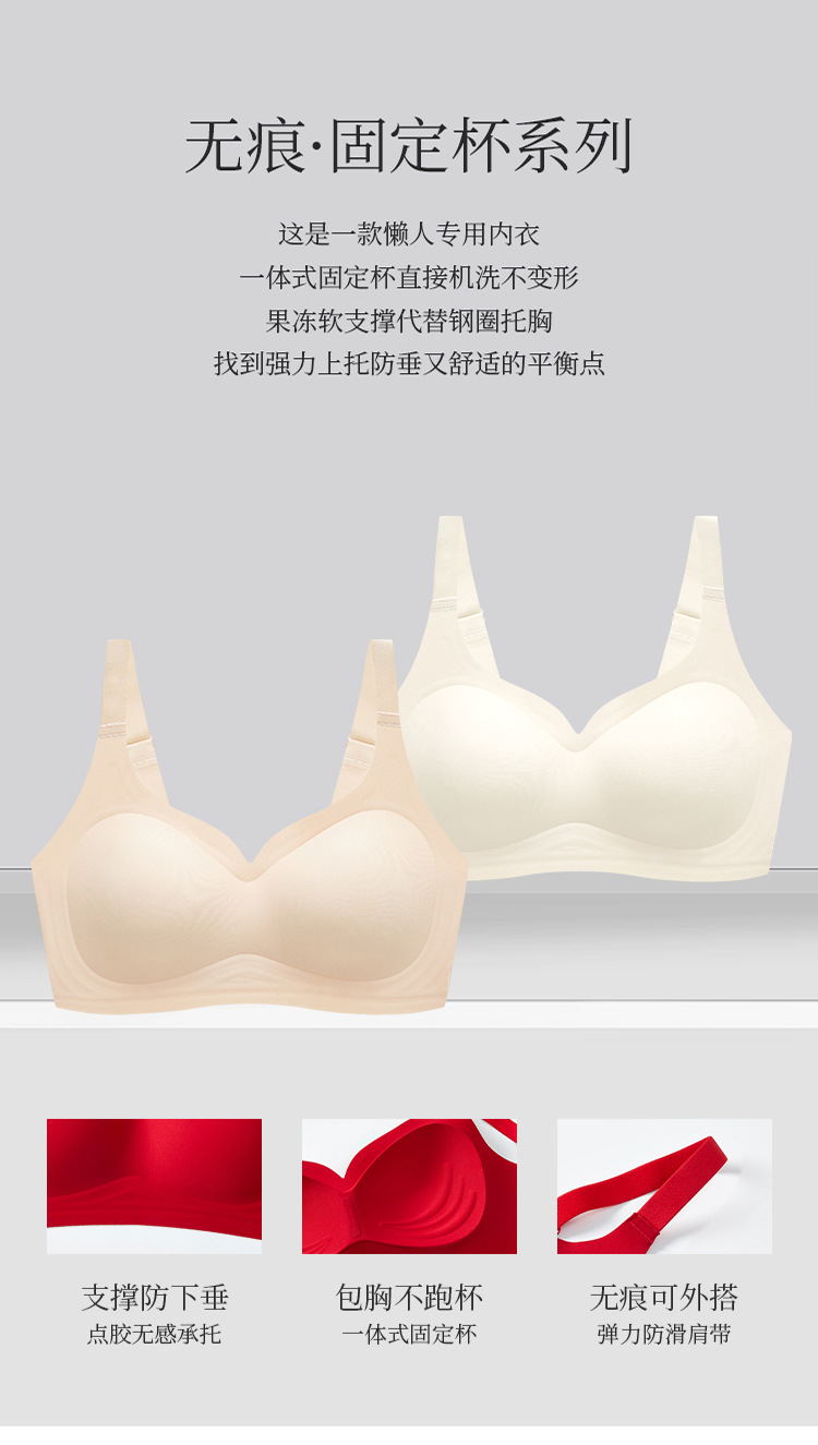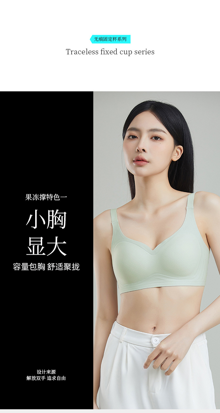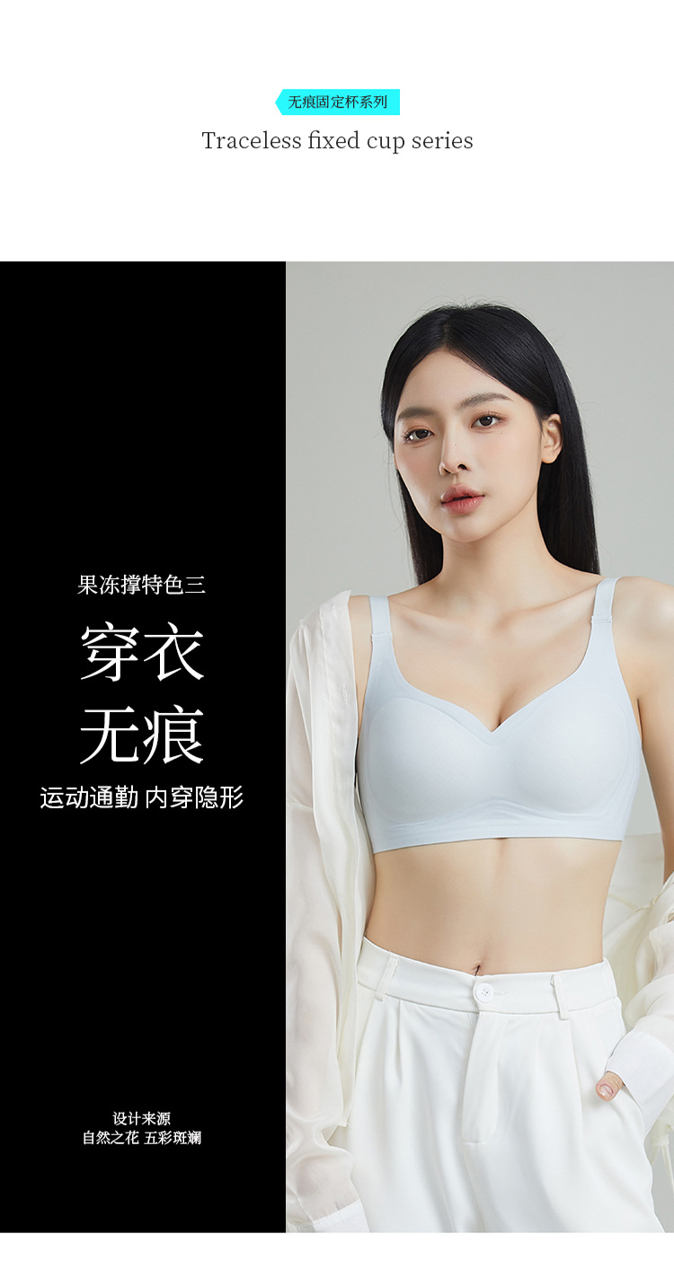 新款无痕果冻软支撑无钢圈云感文胸聚拢侧收固定杯肩带可调节内衣