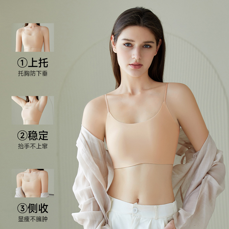 2026新款纸片人无痕吊带背心可外穿型内衣女薄杯大胸显小美背文胸