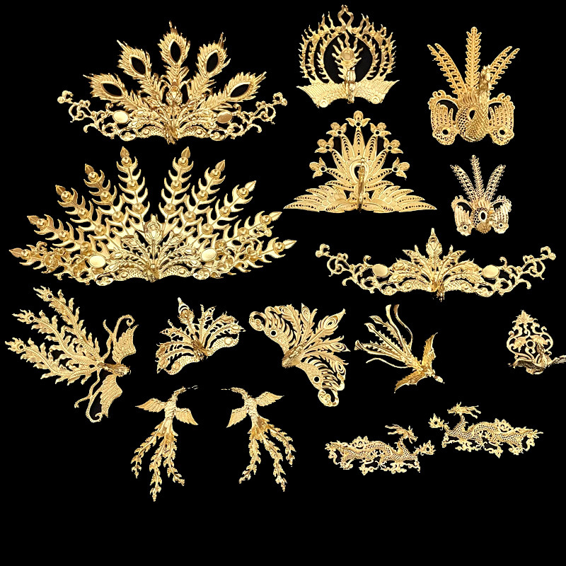 DIY合金凤凰合集发簪头饰材料古风发冠饰品配件批发