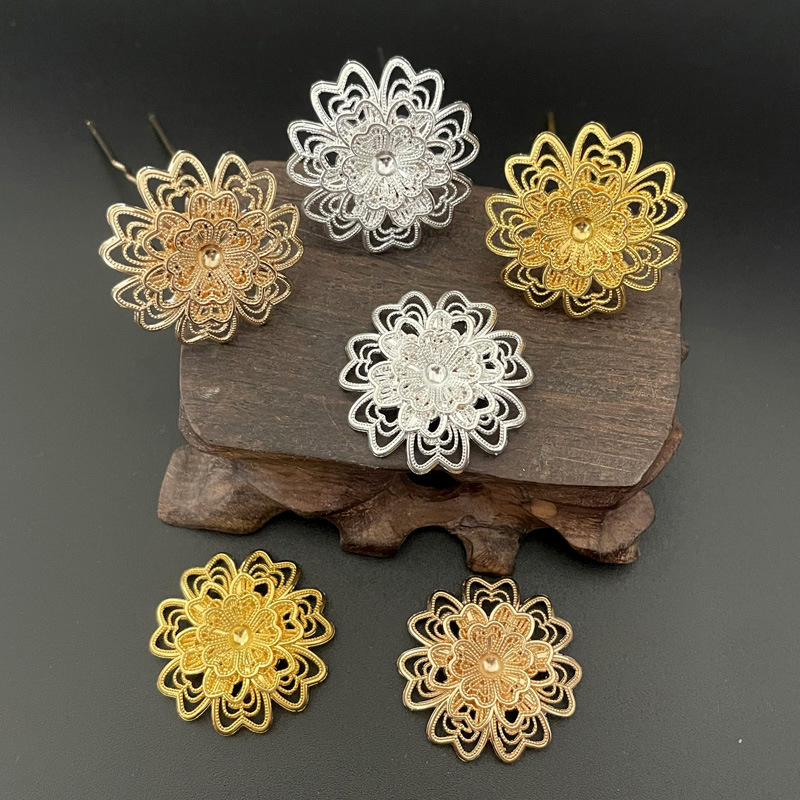 30mm古风镂空花朵发簪合金花片DIY汉服头饰配件保色U钗步摇材料