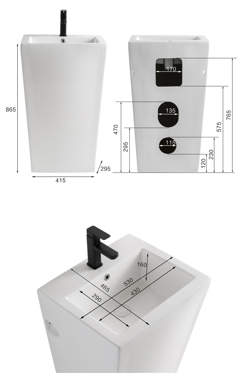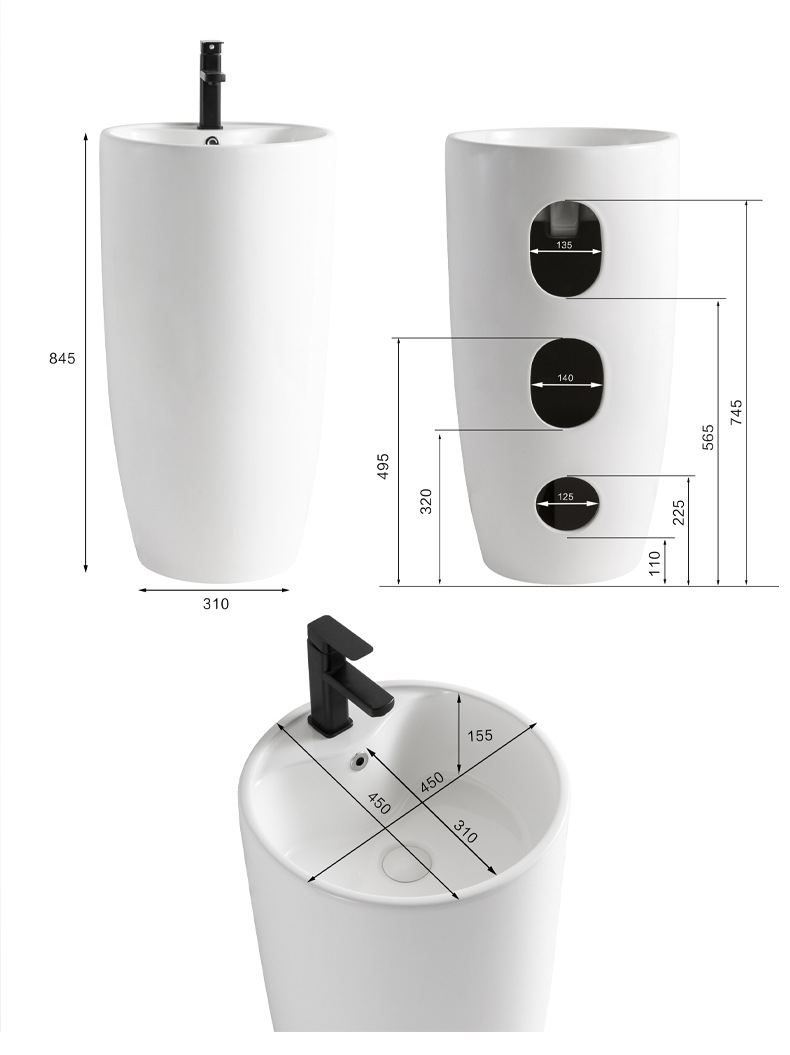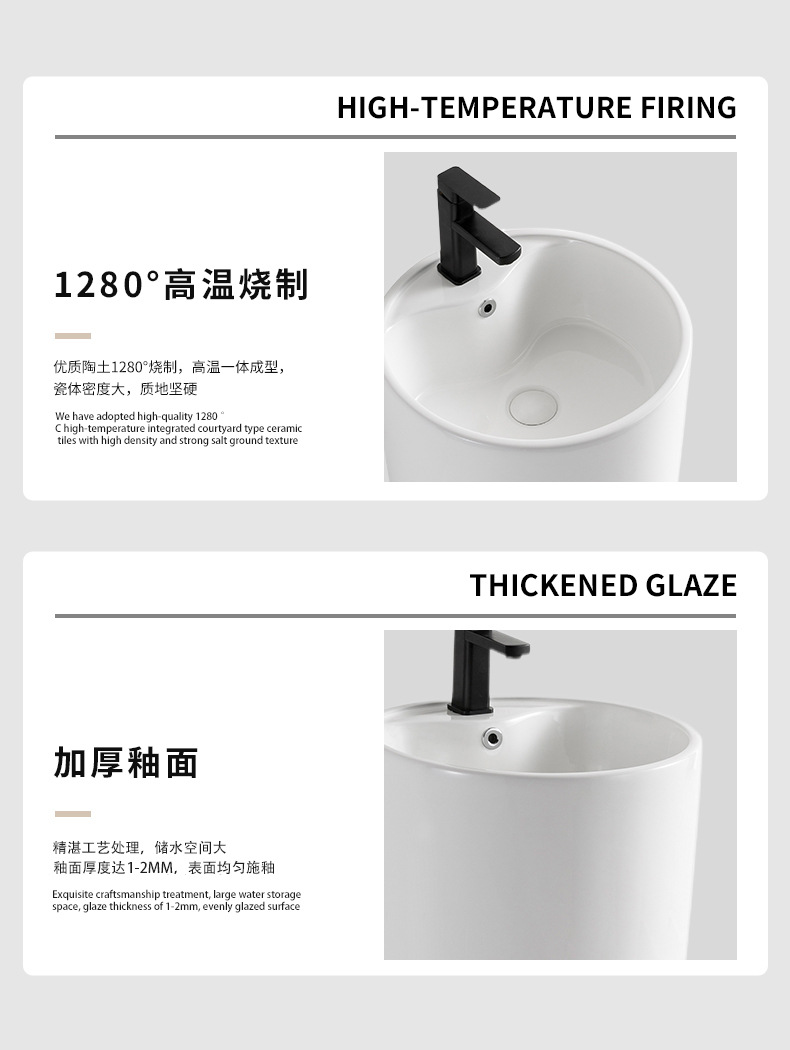 陶磁器立柱盆一体床置き式洗面台ホテル連体洗面器屋外ベランダ立柱式簡易風盆