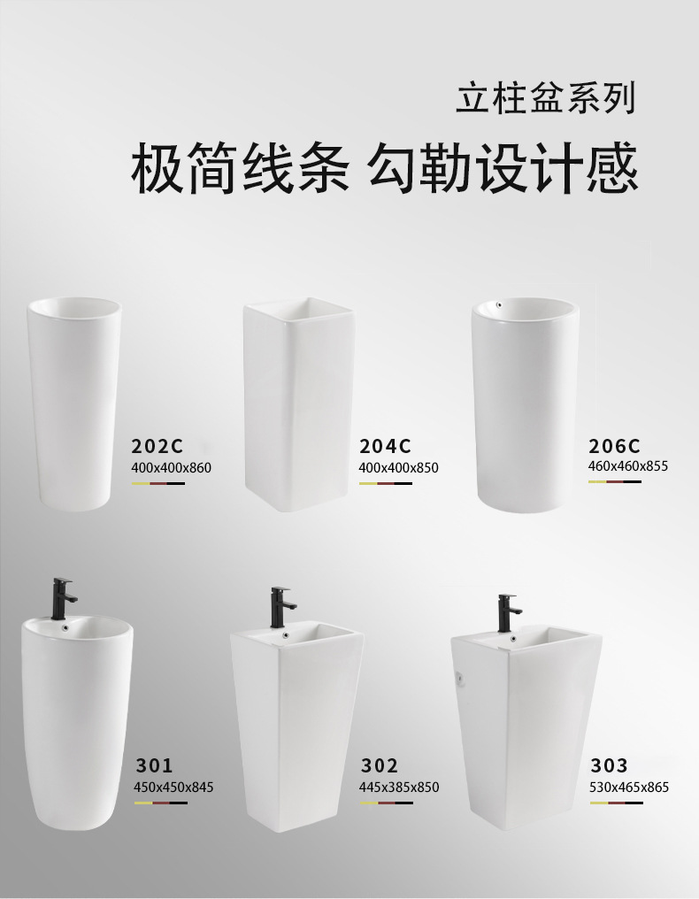 コラム洗面台、中庭屋外バルコニー洗面台、多様なスタイルの床置き型洗面所、セラミック一体型洗面台