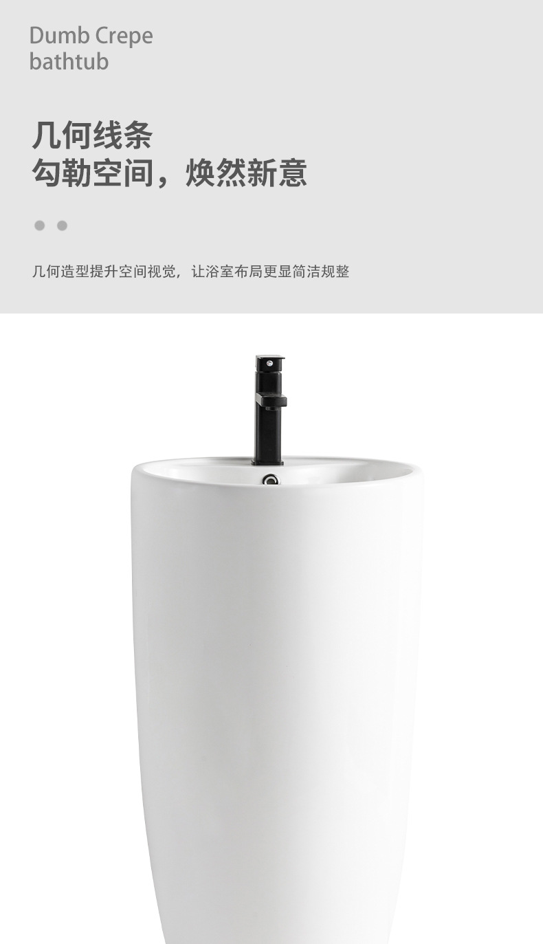 酒店陶瓷立柱盆枪灰奶油风洗手盆卫生间落地式脸盆一体圆柱盆台盆