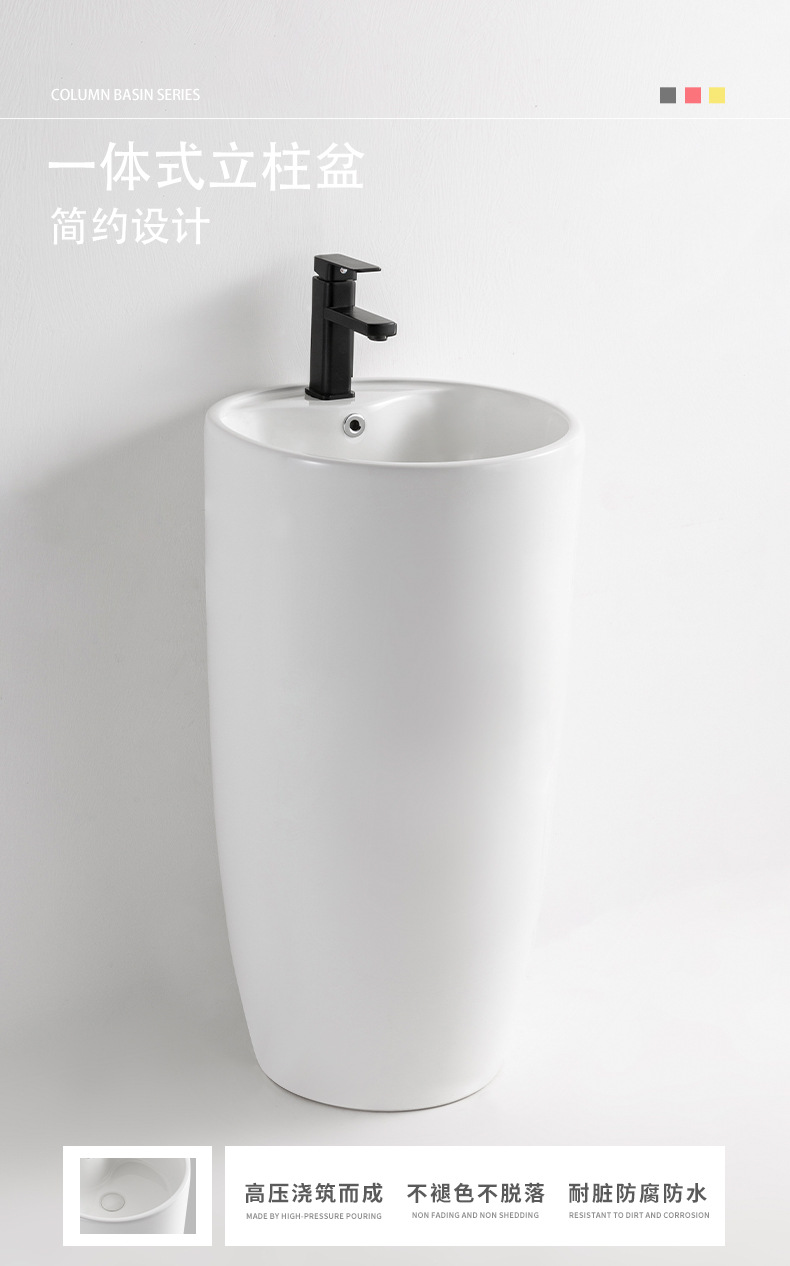 柱型洗面器 浴室柱型洗面器一体型セラミック小型床置き洗面器 バルコニー洗面器