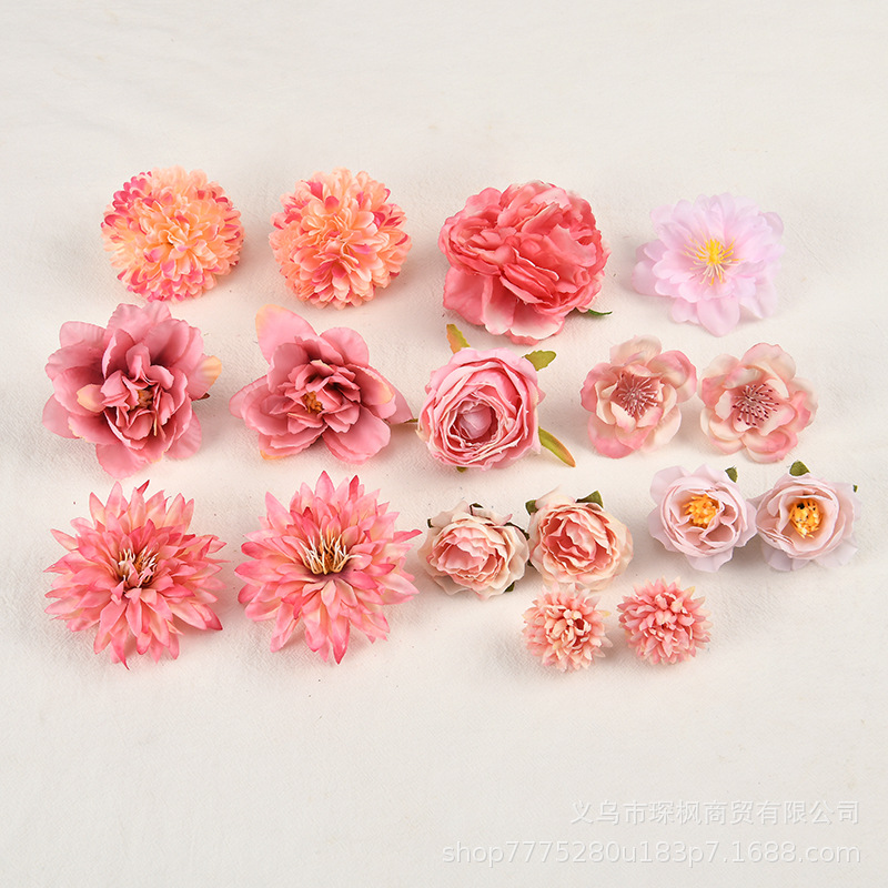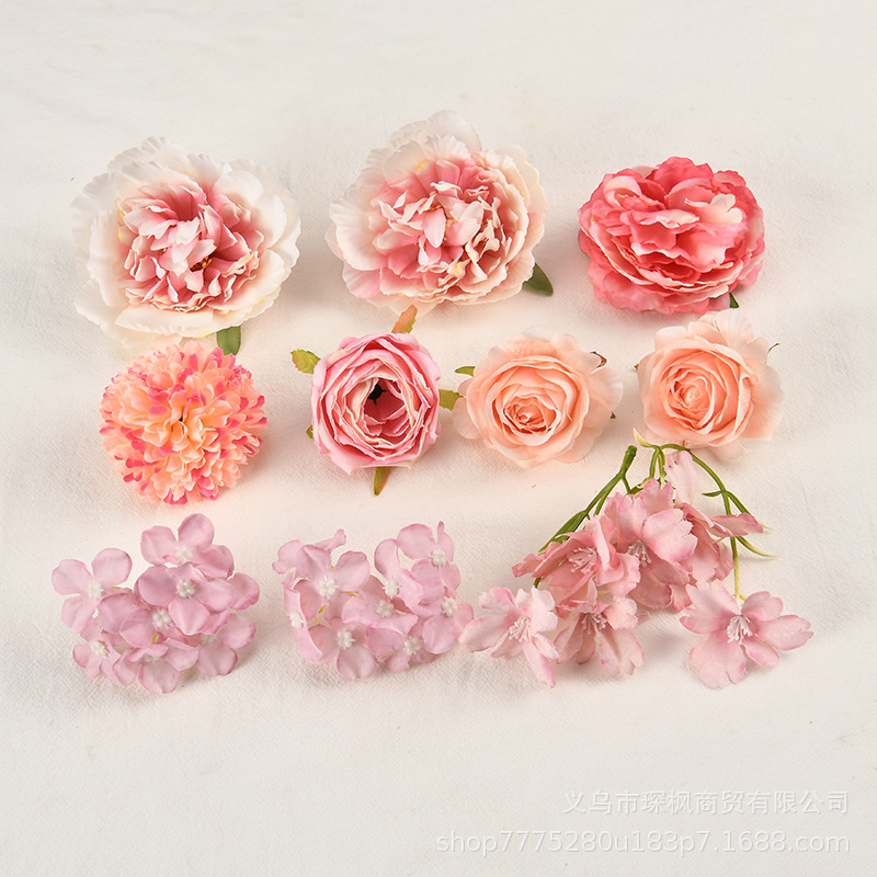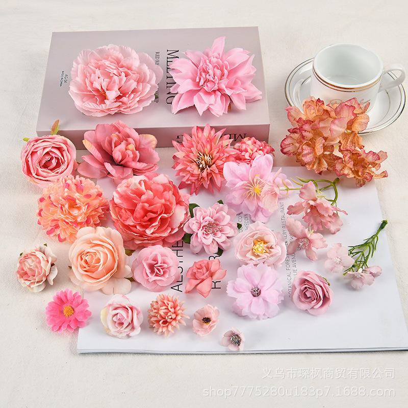 ピンク系シミュレーション花セットバラ牡丹茶蕾花造花絹花古風頭飾り痛包DI