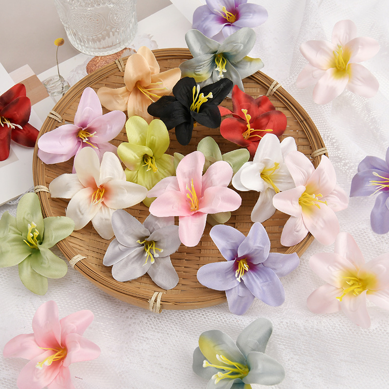 ユリの花の頭の偽の花の絹の花のdiyの手作りの材料をシミュレーションします。