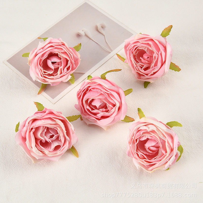 DIY手作りの花輪の材料はバラの花の頭のヨーロッパ式の復古のお茶のつぼみの花の胸の花のあめの箱の部品をシミュレーションします。