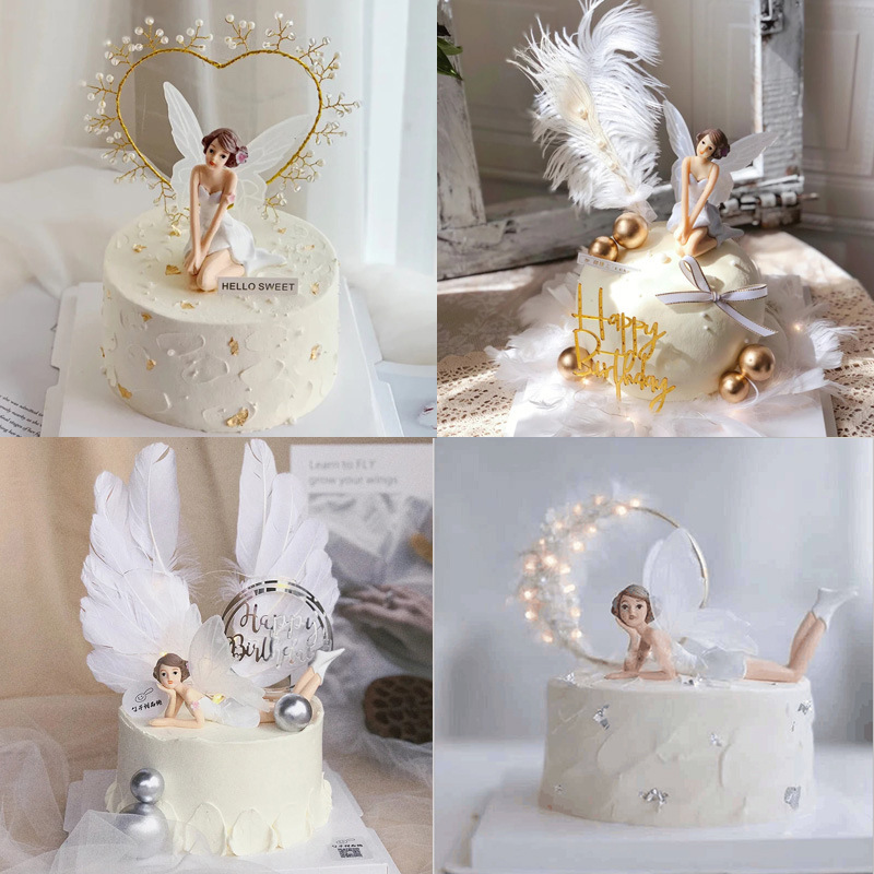 花仙子の誕生日ケーキの装飾花の置物の精霊仙子の少女の王女の焙煎のプラグインの挿し込みのネットの赤