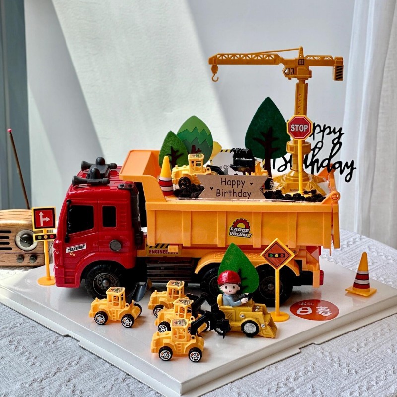 大型ダンプトラックケーキデコレーションオーナメント掘削機エンジニアリング車両タワークレーン子供の最初の誕生日デザートテーブルアクセサリー