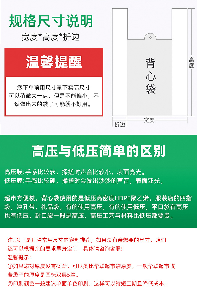 白い食品のビニール袋の外に持ち出して便利な袋の大きい小さいサイズのベストの手提げ袋の使い捨ての透明な袋を梱包します。
