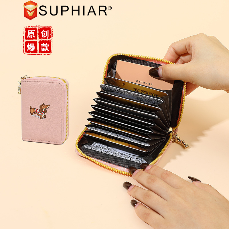 PU刺繍漫画ジッパーカードホルダー、消磁防止IDビット、大容量、マルチカードスロット、小銭入れ、オールインワンオルガンカードホルダー