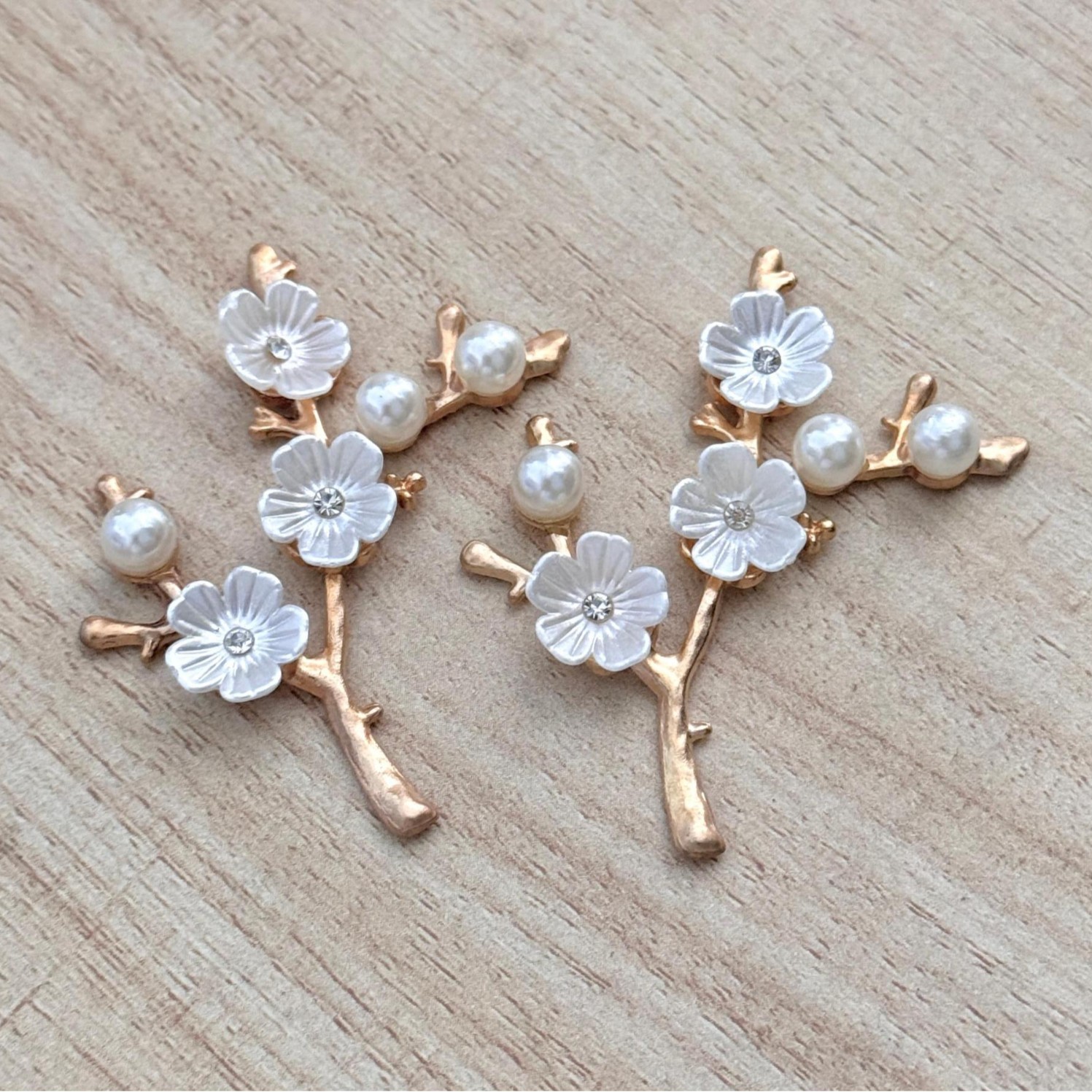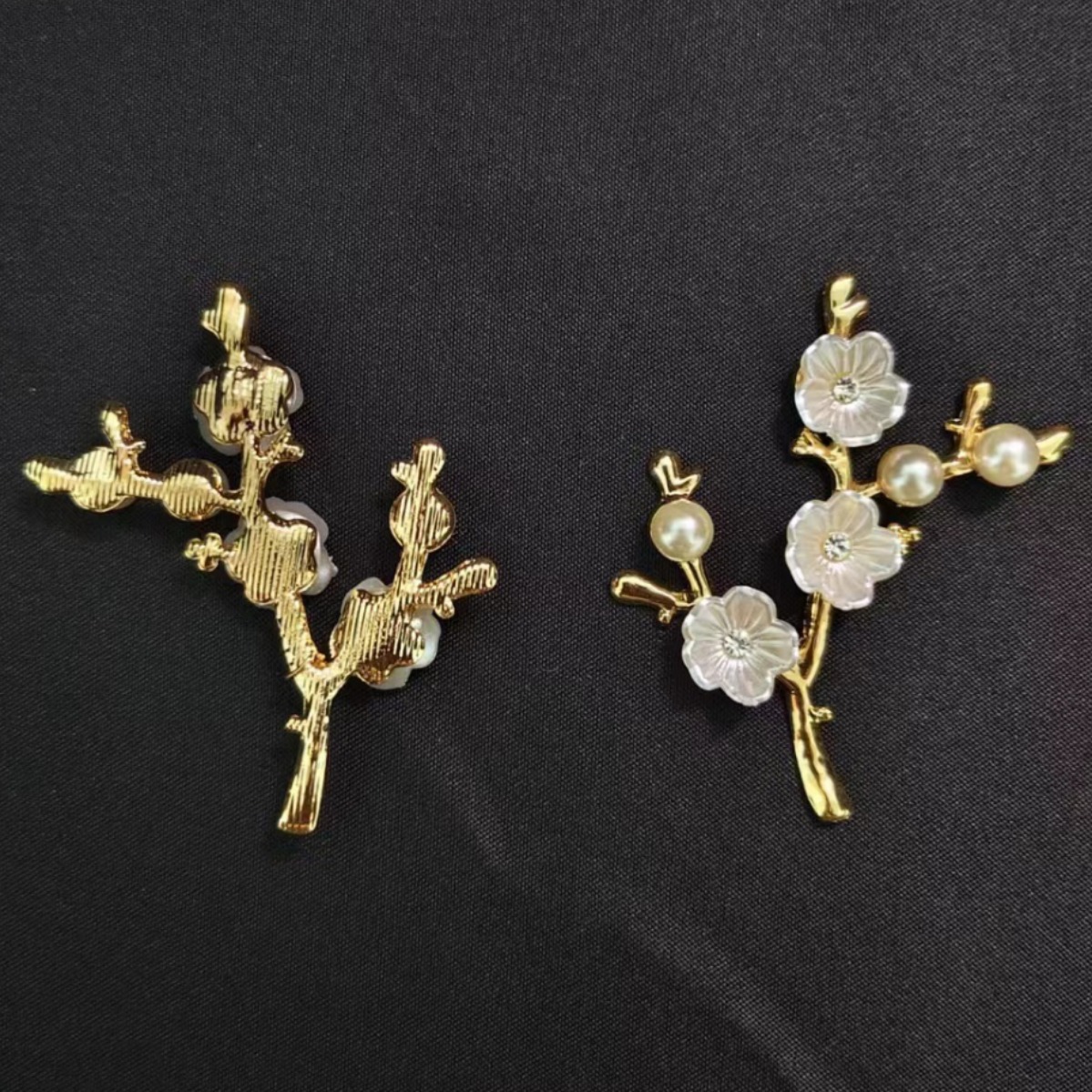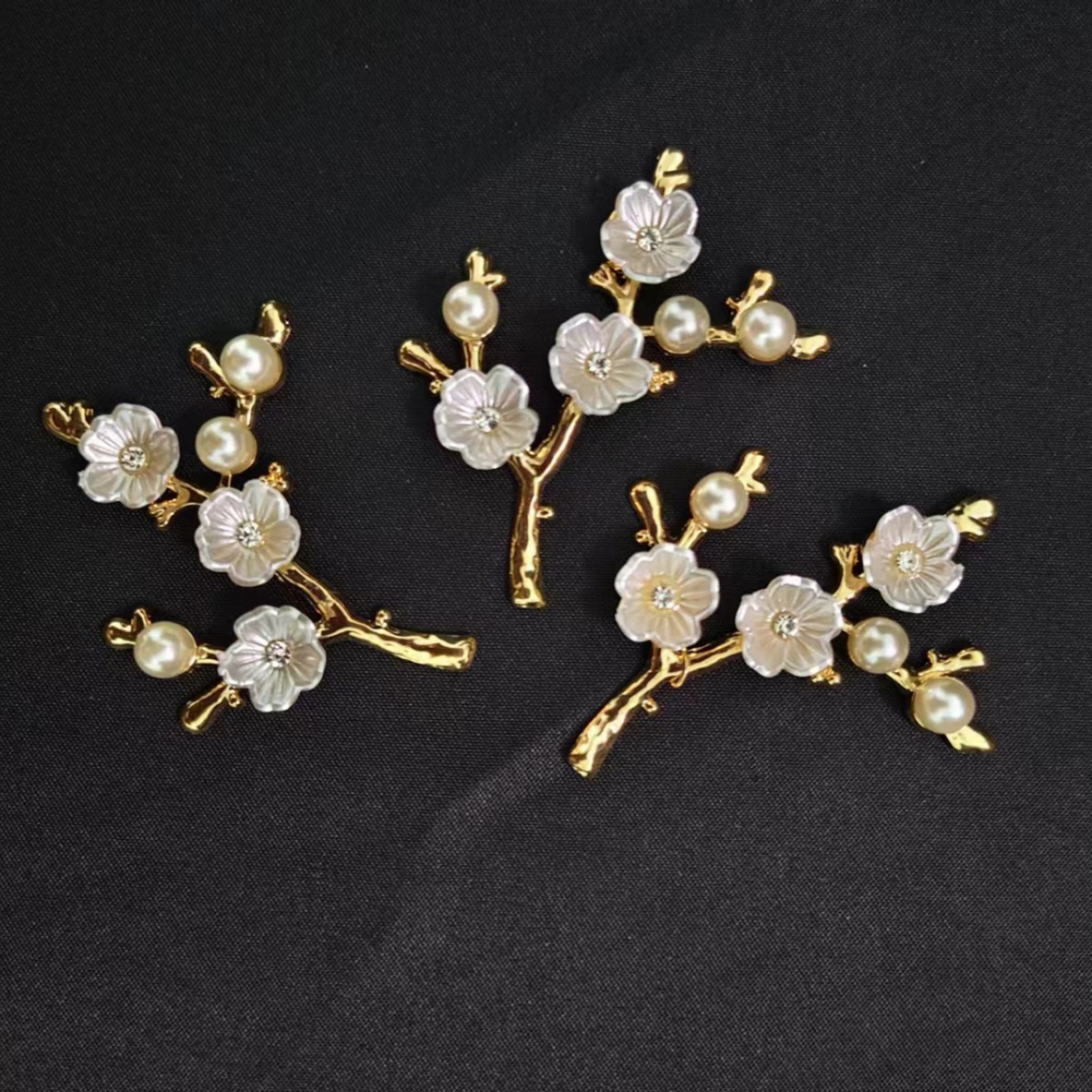 新しい真珠のダイヤモンドの枝の木の枝の3つの梅の合金のアクセサリーの部品のdiyの新婦の髪飾りの団扇の材料