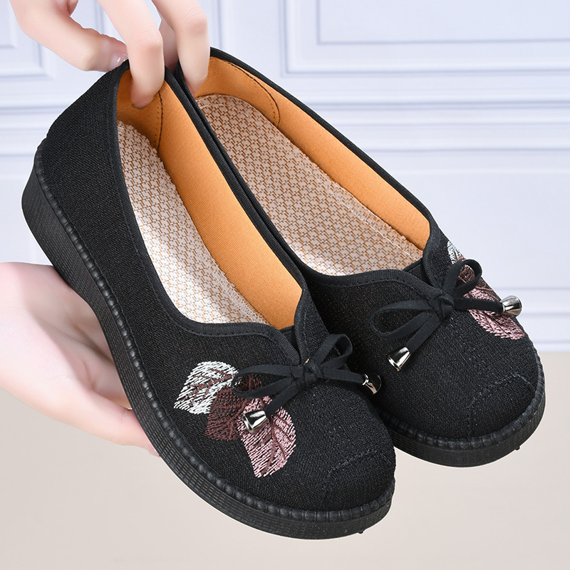 春夏の新型の古い北京の布の靴の平の浅い口の通気性の柔らかい快適なカジュアルシューズの中で老年の女性のお母さんの靴