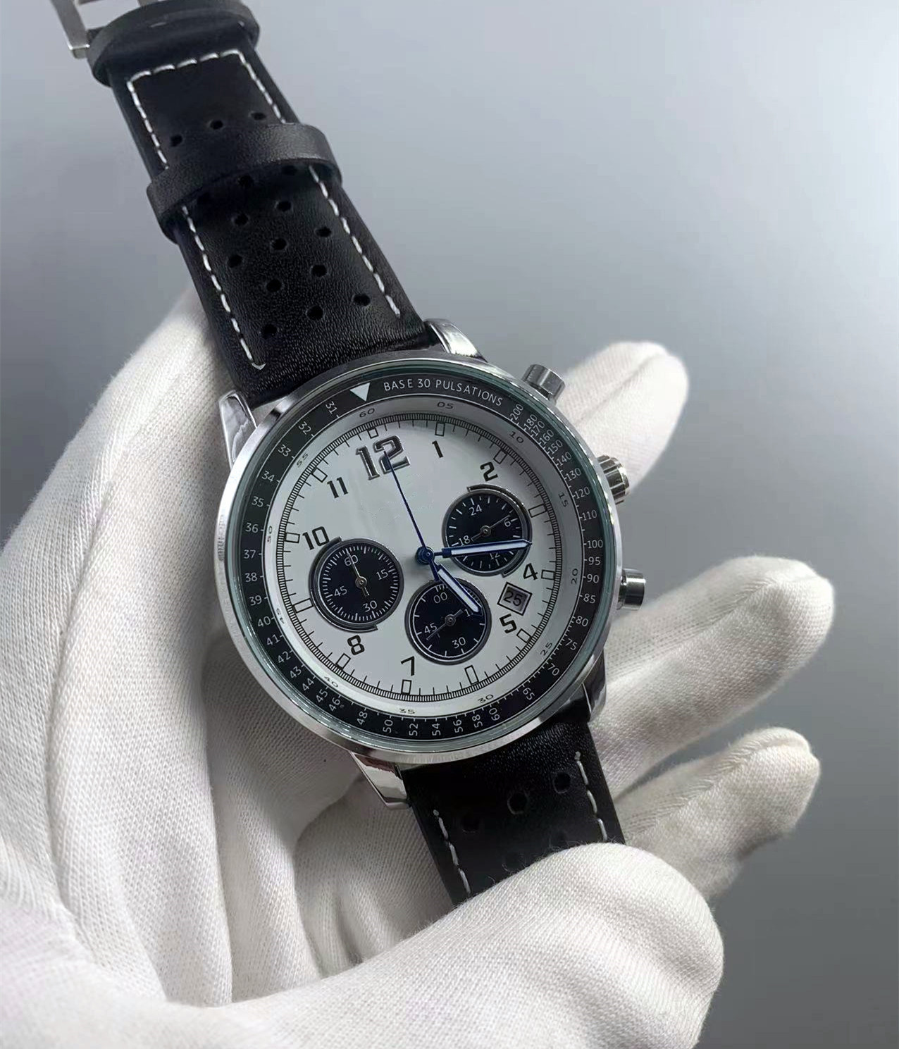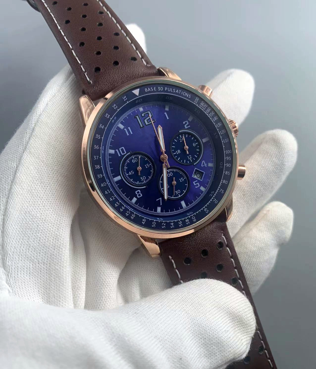 クロスボーダー高級ブランド多機能クロノグラフクォーツ腕時計防水カレンダー付きメンズ腕時計本革ストラップ工場直販