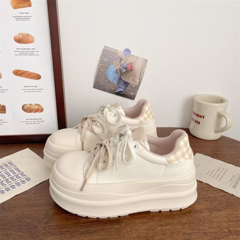 可爱大头高级感增高面包鞋小白鞋女厚底高颜值学生小个子显高板鞋