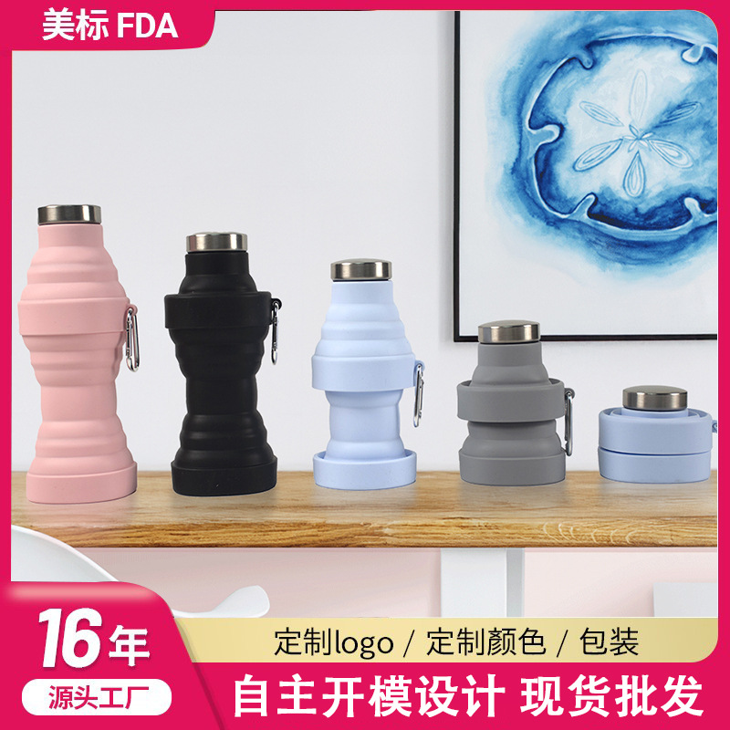 メーカー卸売り携帯食品級シリカゲル折り畳みカップ500ml運動水筒屋外伸縮解凍コップ