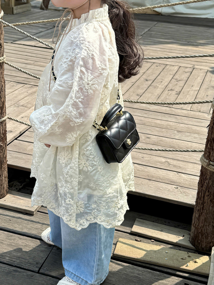女の子バッグ2024新型洗練された子供の小方バッグ高級感小香風銀色ミニ小銭入れ
