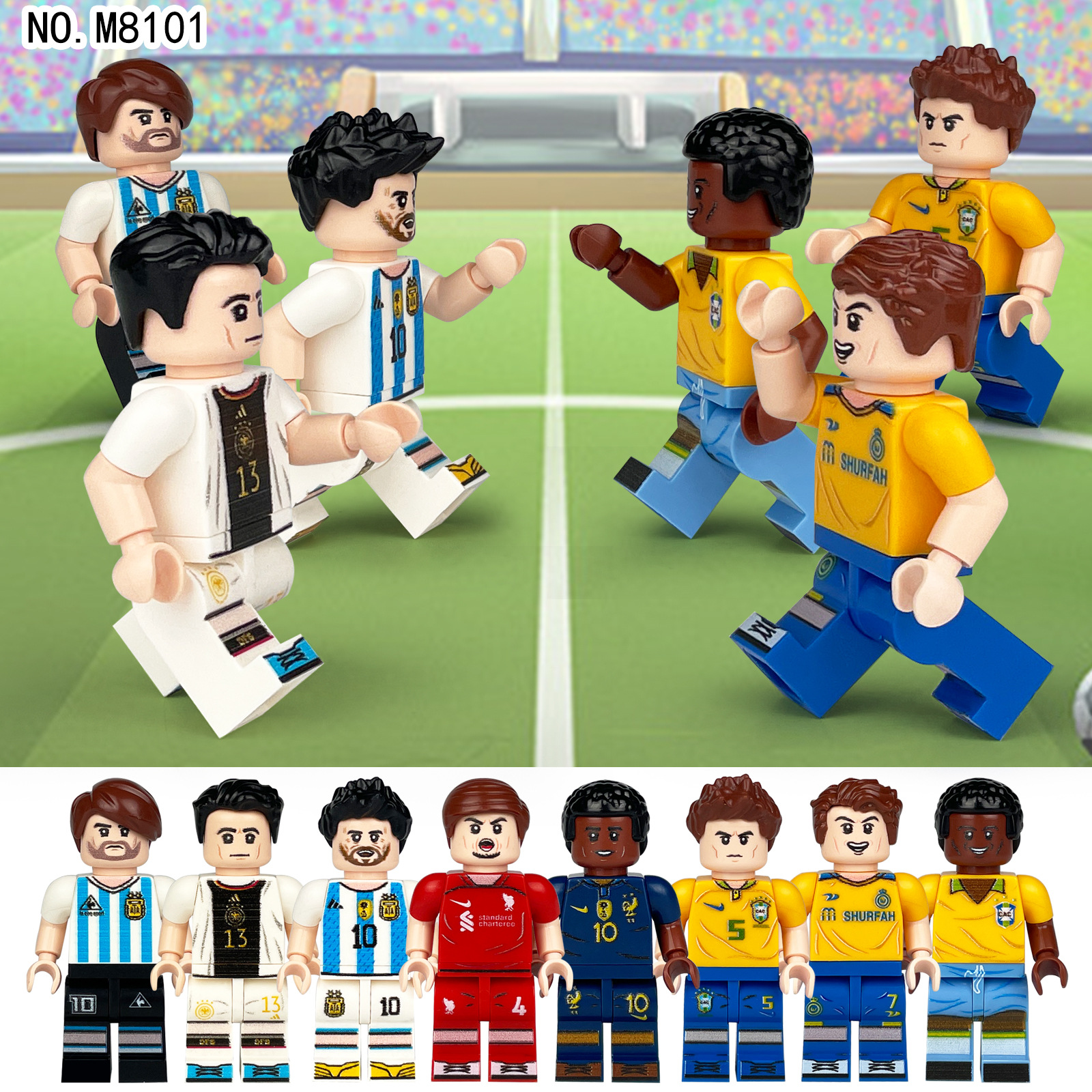 外国販売はサッカー選手のスターのメッシベルCロベリの積み木の子供のサッカー場のシーンのおもちゃのPYPを提供します。