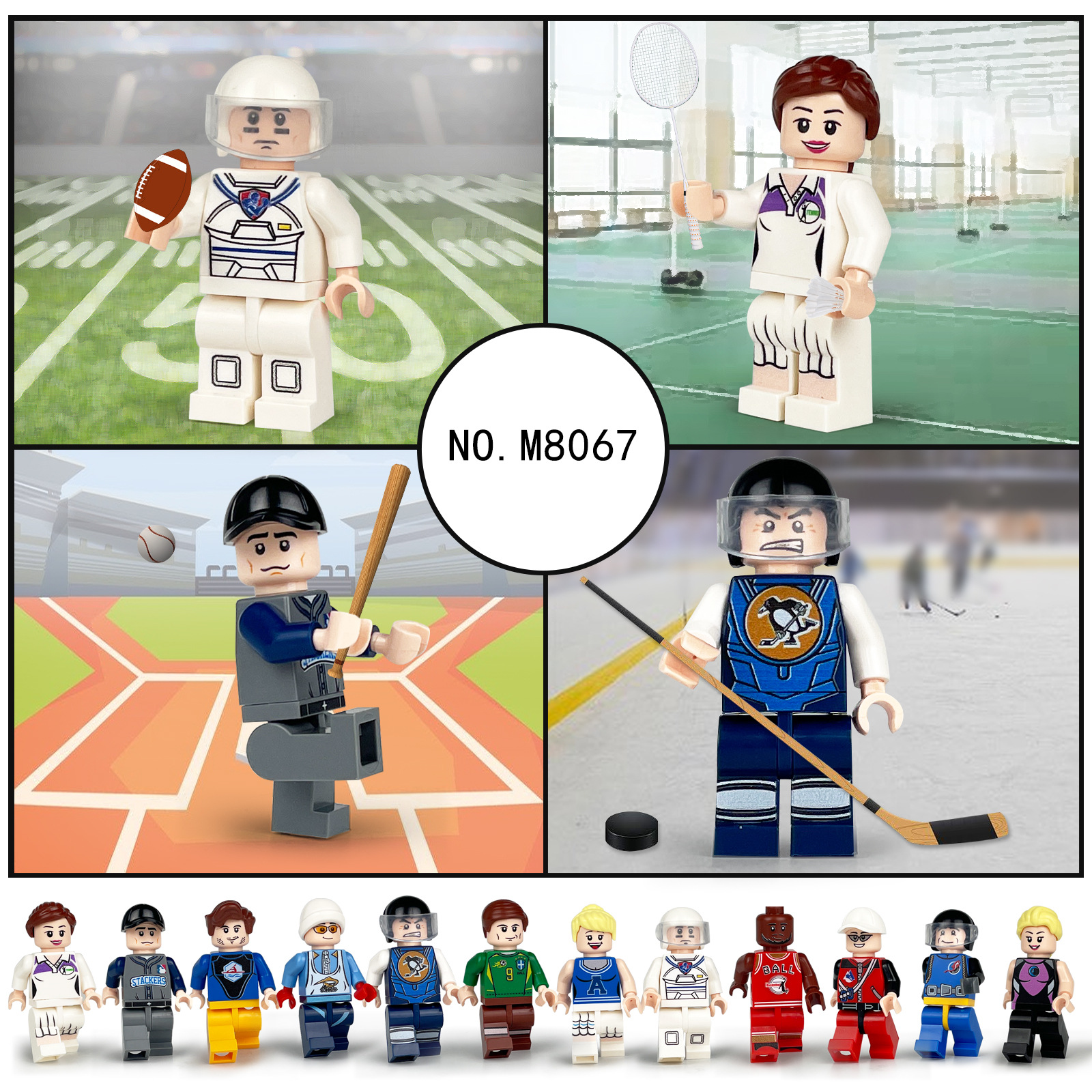 スポーツ系の人の小さい粒子は積み木のおもちゃの人形のバスケットボールのサッカーの底板の部品を組んで国境を越えて卸売りします。