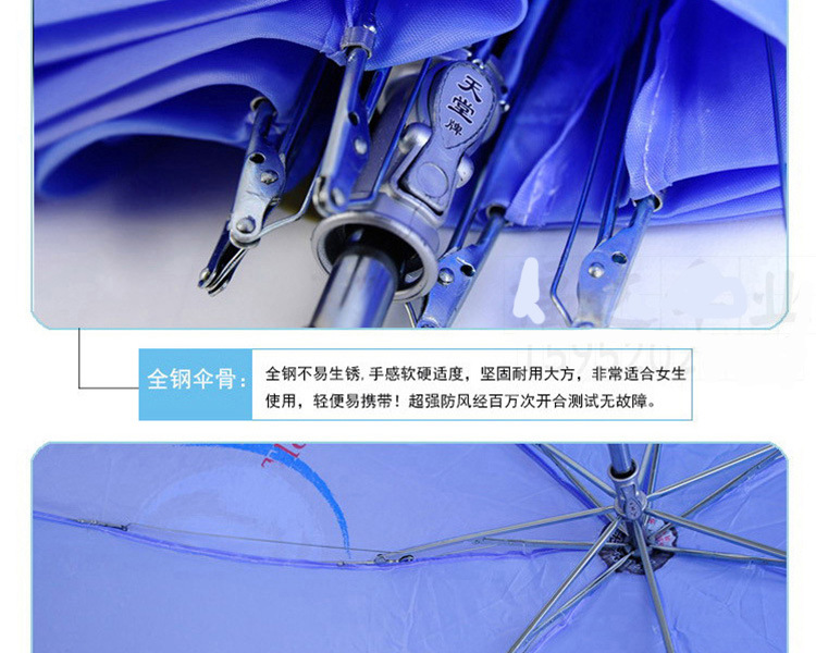 3﹑实际用途广:广告伞具有阴天遮风,雨天避雨,晴天遮阳的功能,是男女老少不可少的一种日常生活用品;