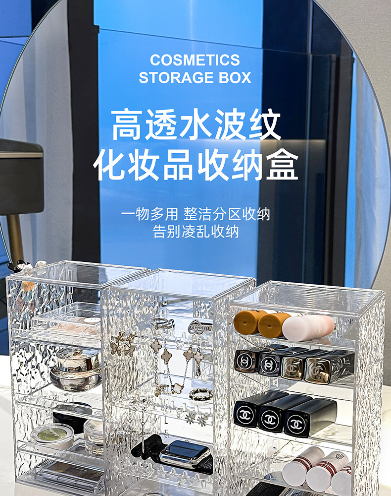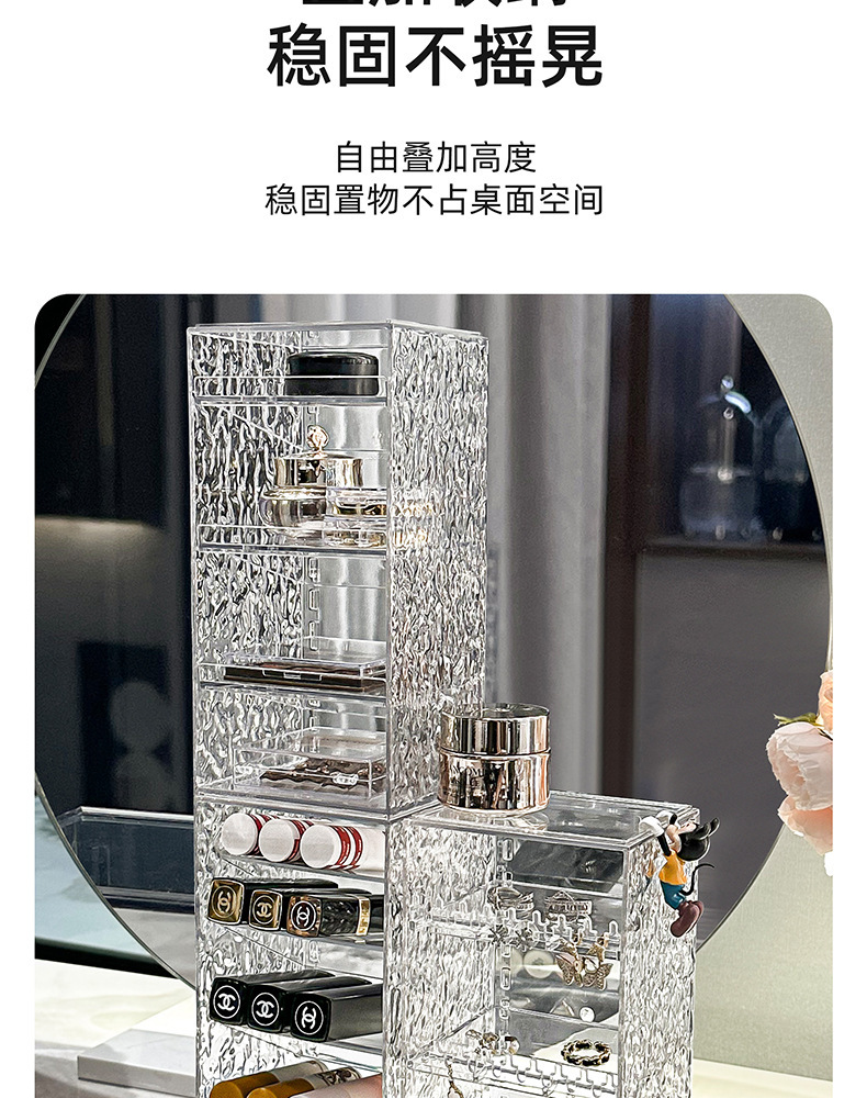 防尘化妆品收纳盒桌面高级感香水口红整理架大容量粉饼眼影展示架