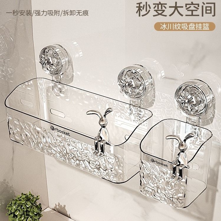 トイレ吸盤ラック洗面台壁掛け式洗面タオル収納ケース穴なし整理ケース浴室バスケット
