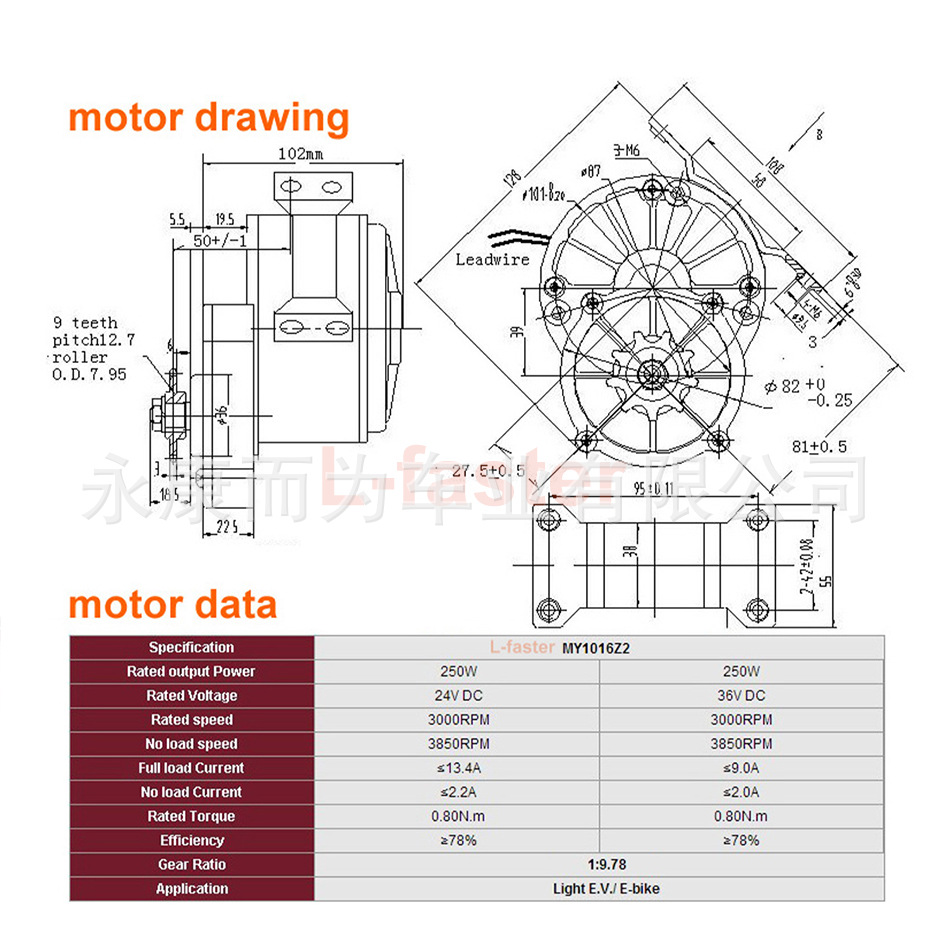 1. 1x 250W有刷电机(带飞轮链轮)