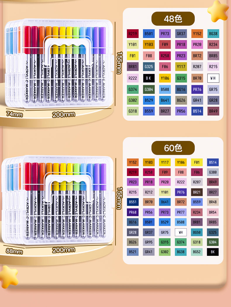 アクリルマーカー 防水 100色 60色 48色 子供用絵具専用アクリルペン 手描き 不透明 グカ