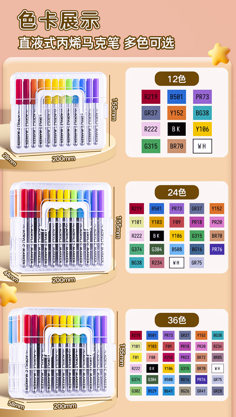アクリルマークペン24/36/48色diy防水不透色折り畳み可能学生カラーペン絵画セット文房具
