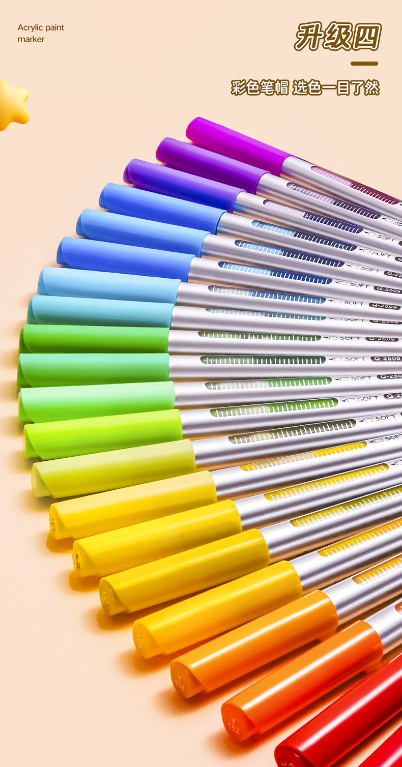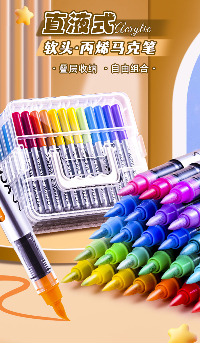 カラーペンアクリルソフトヘッドマークペン不透紙折り畳み可能児童学生専用美術24色カラーペン