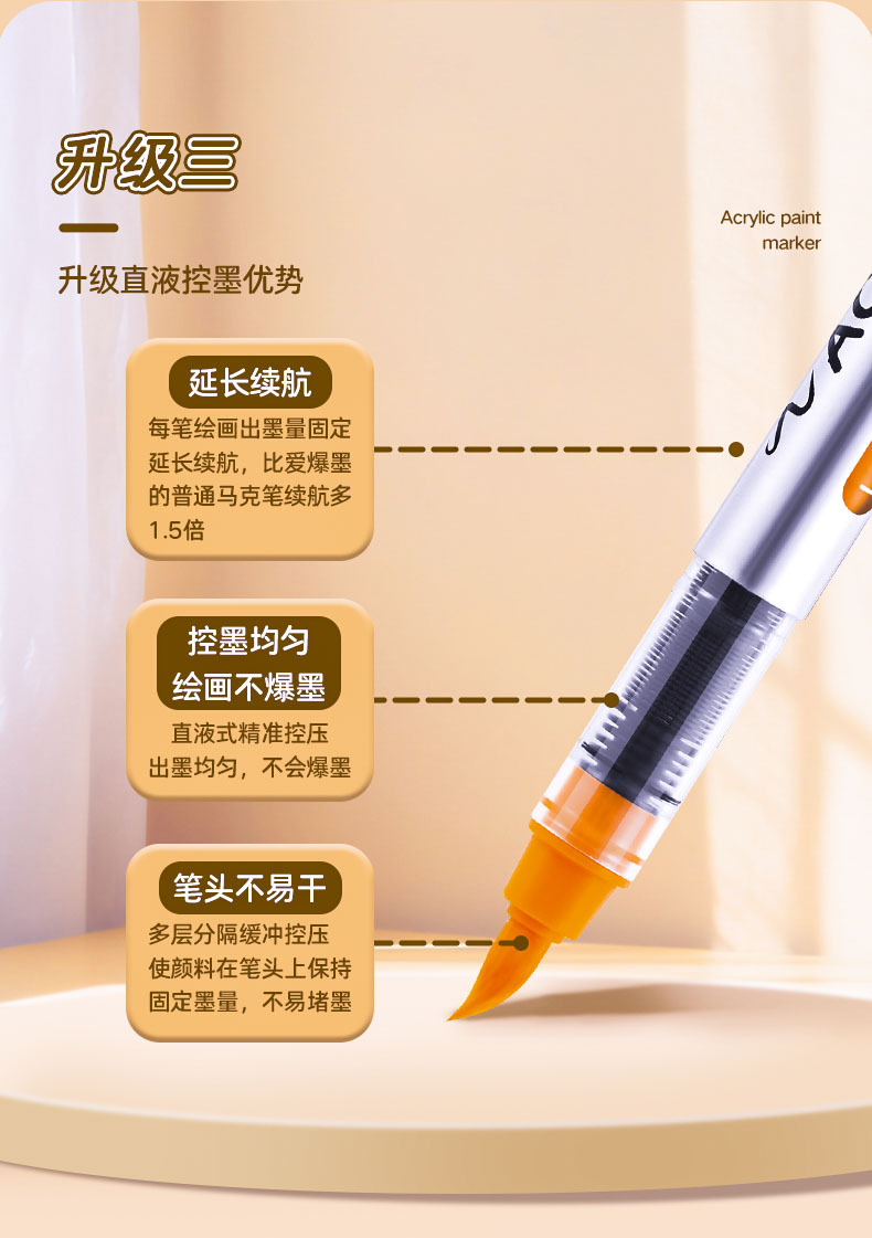 アクリルペイント押し式中性ペンハイライトカラー絵画落书き手帐ペンブラシ手描きチョークペイントペン