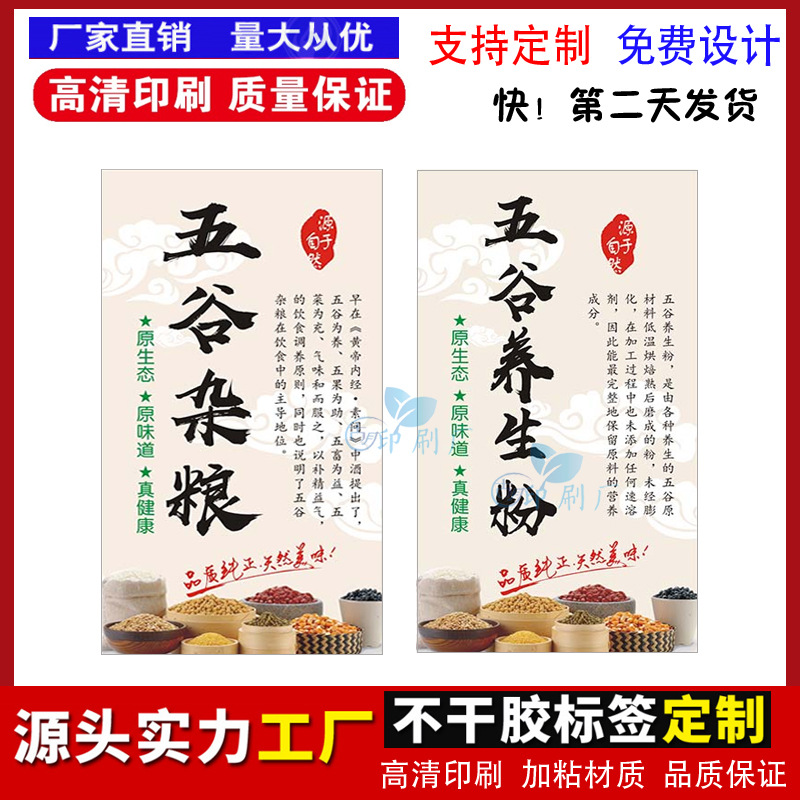 カスタム五穀雑穀ラベルシール赤豆緑豆黒米不乾性黄粟五穀雑穀粉貼り印刷